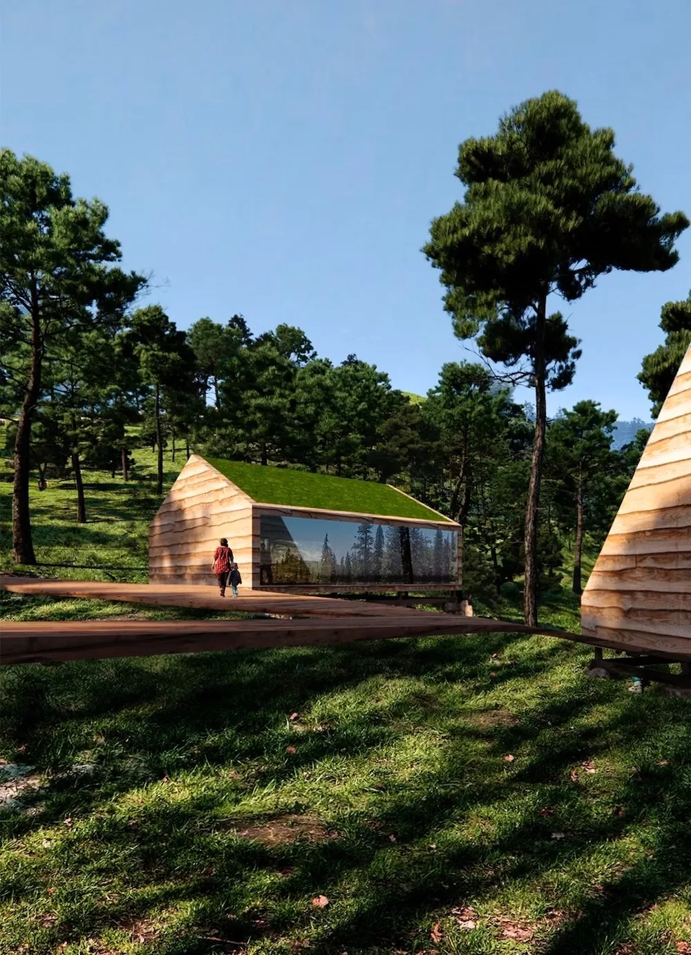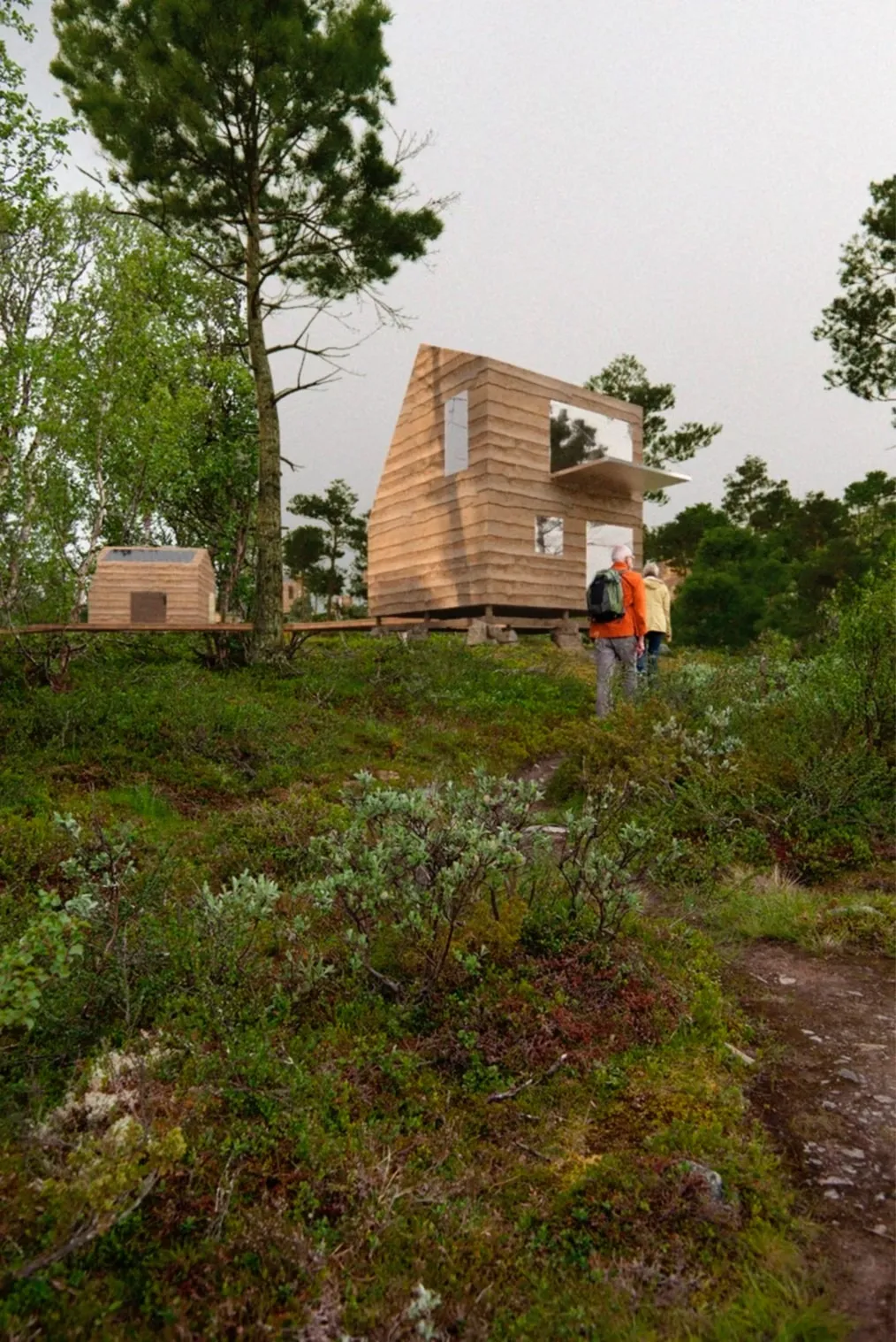 The first pilot, consisting of two clusters with four cottages and a technical unit, is planned near the popular recreation area Otrosåsen at Hovden in Setesdal, Norway. The cabins are placed on piled stones and connected by a network of footbridges raised above the terrain with the necessary infrastructure, such as water and electricity, underneath. By using carefully placed footbridges and traditional piled stone fundaments, permanent changes to the landscape are avoided.