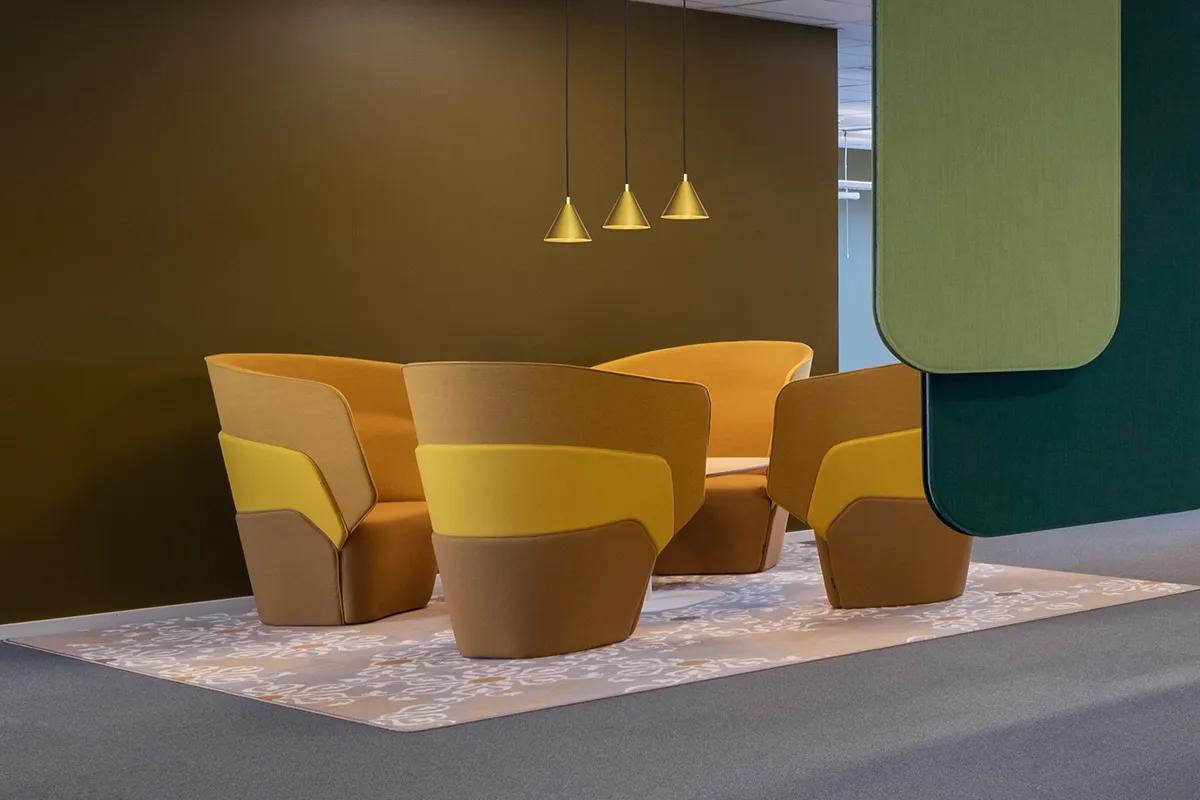 Hyllie Terrace atrium with interior design by Louise Hederström made from reused/recycled or discarded materials and furniture
