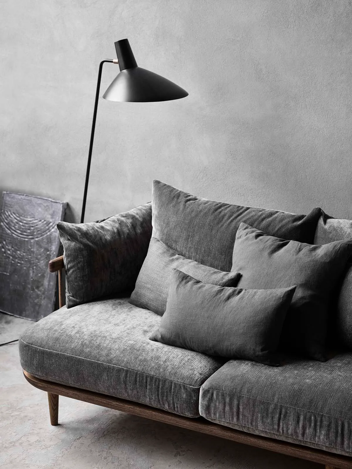 Tripod, a floor lamp built from lacquered steel with brass details, reflects the clean minimalism of Copenhagen-based duo Hvidt & Mølgaard. Considered Old Masters of mid-century Danish design, their pieces often lend a sculptural element to the spaces they inhabit.