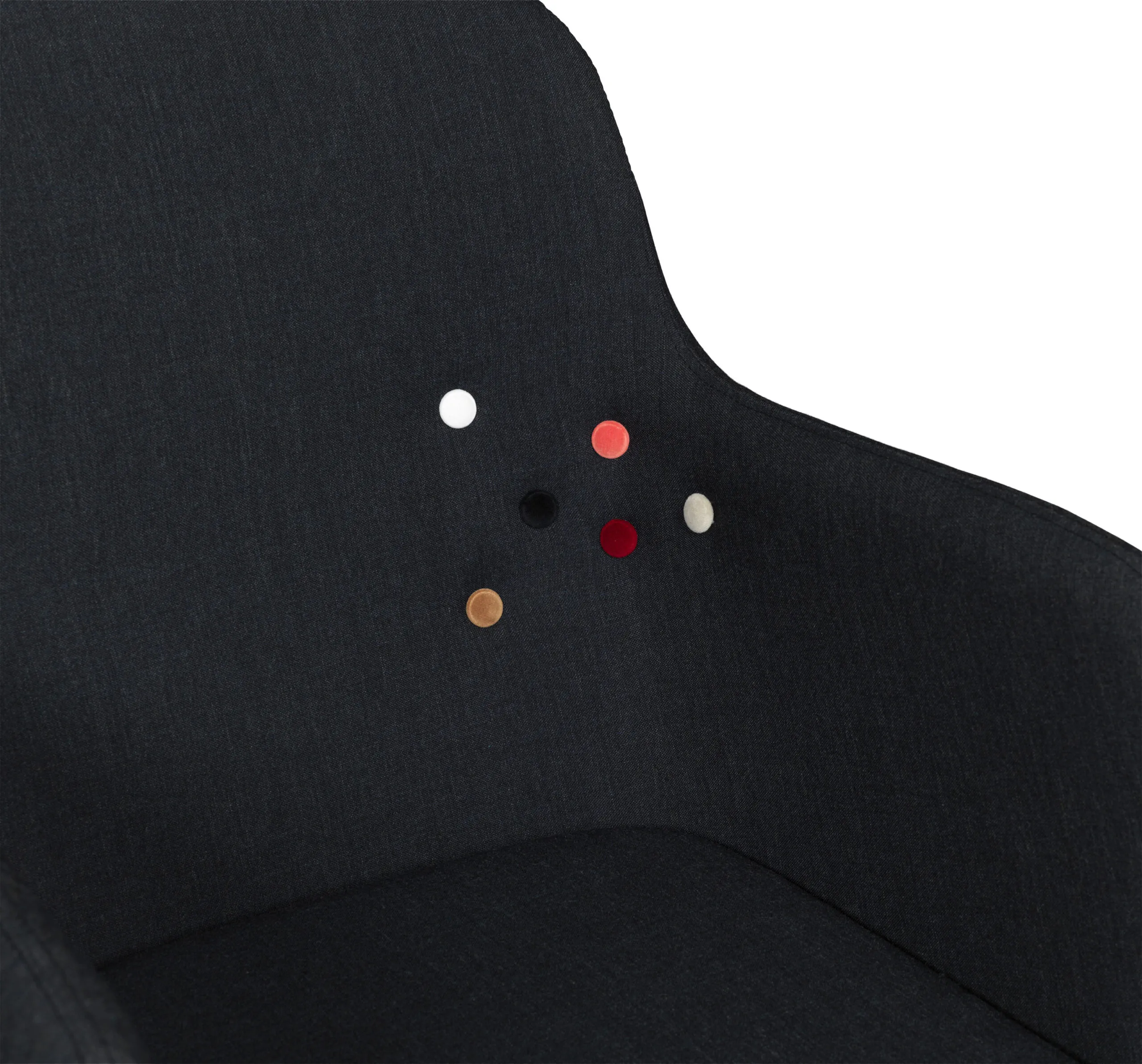 TRIXIE by Anna Kraitz Moulded seat and back. 7 buttons. Legs in massive oak. Fabric …