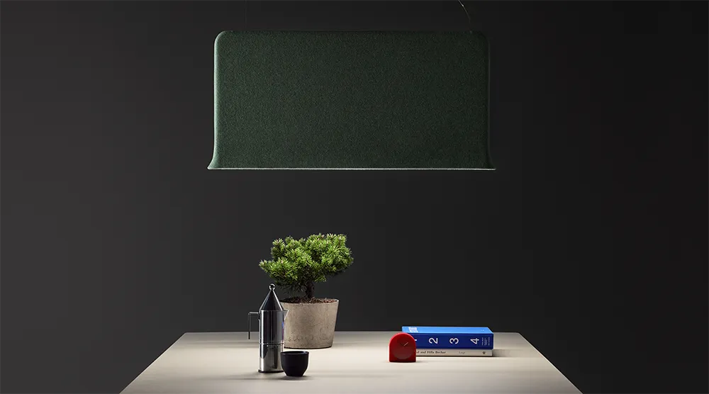 Trumpet is remarkably thin, which gives the product a certain elegance. Yet, it makes a huge difference when it comes to noise. The precursor of Trumpet was designed for a dining room in an Andorra ski-resort, which on an average day was filled with 400 energetic kids with ski boots.