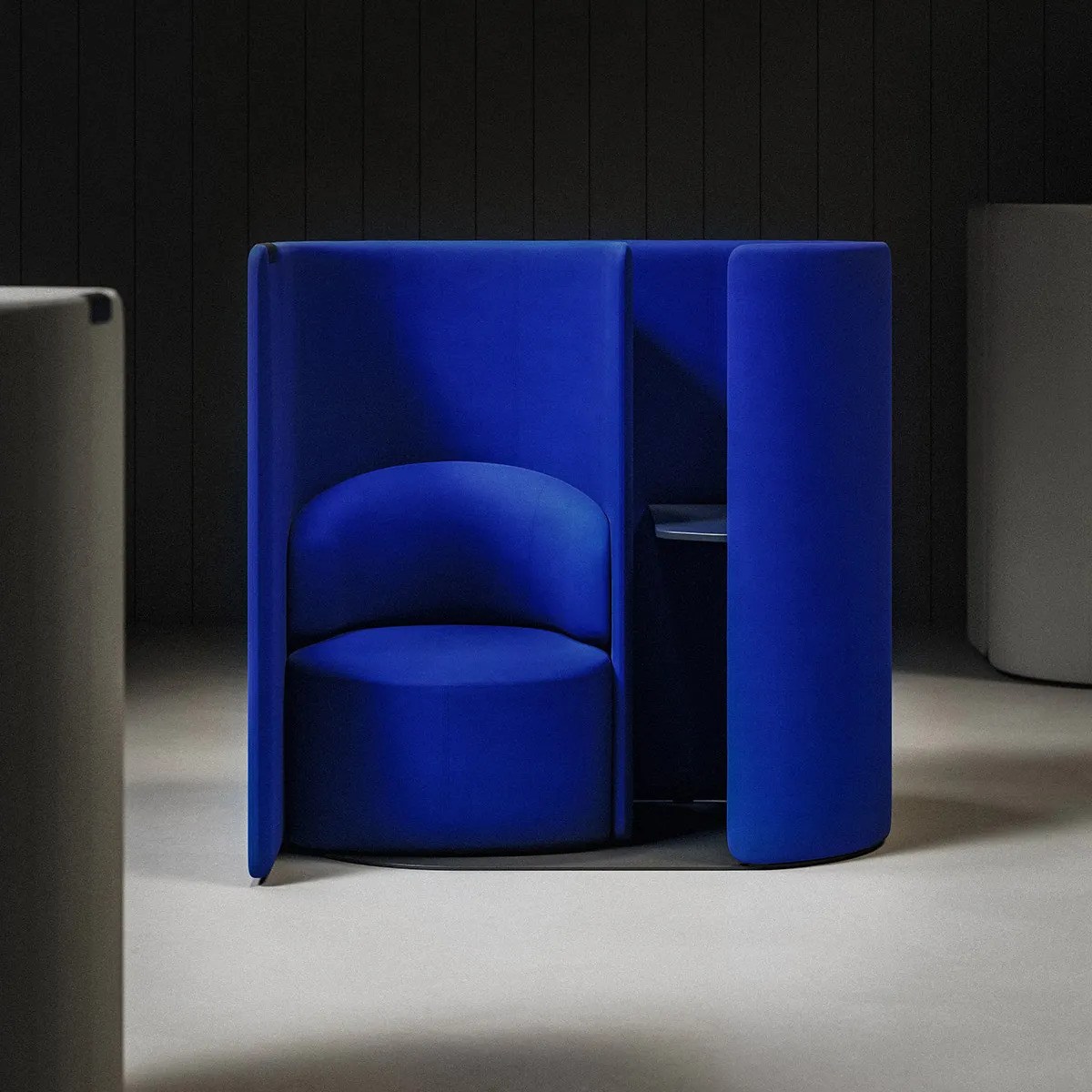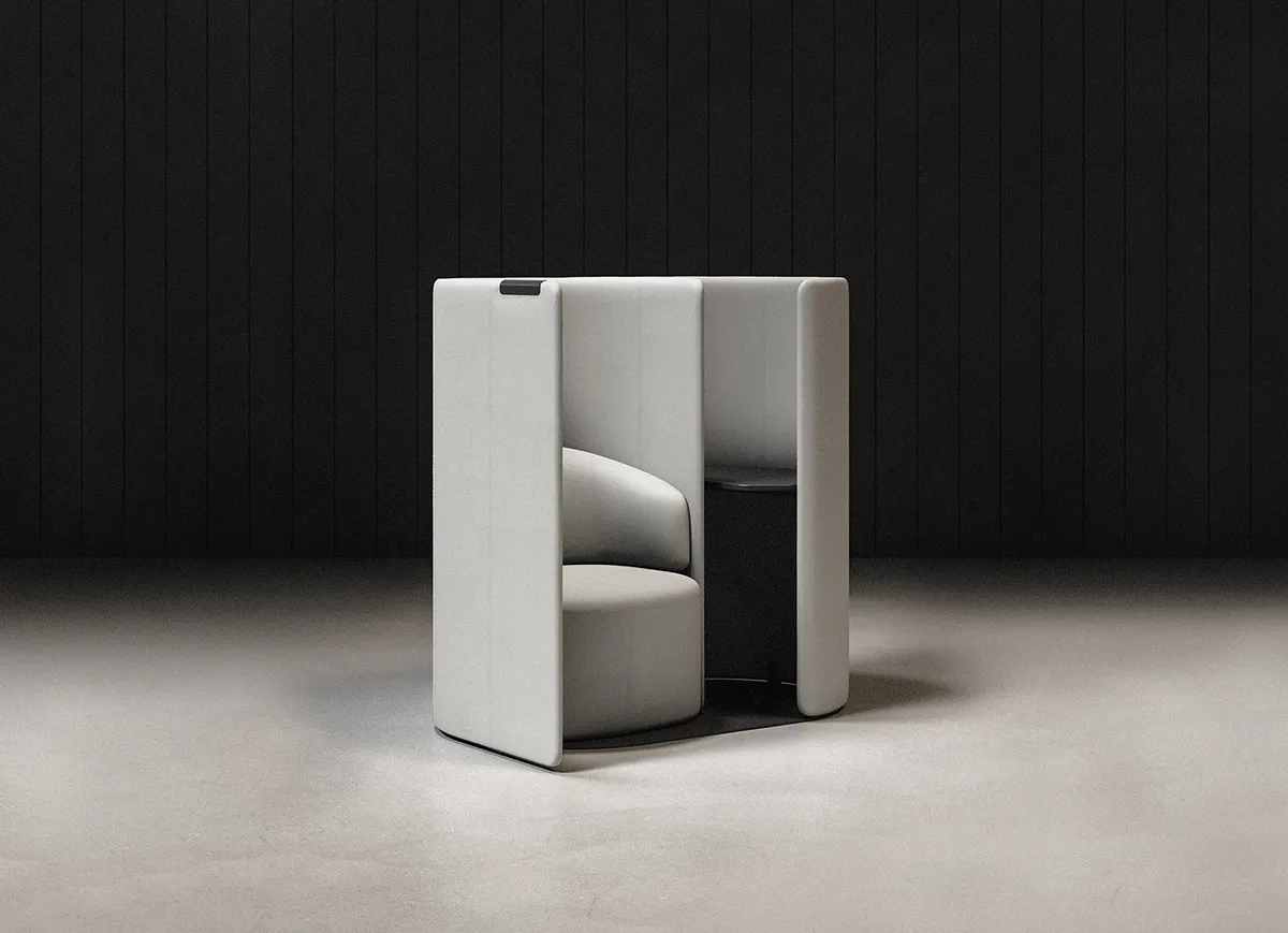 Developed by London-based design studio Industrial Facility in response to the Annual Briefing on ‘defining’, Tulipan suggests a softer form for private space in the open plan. It’s not a room per se. Neither is it a phone booth. Instead, it’s a micro-quiet space where a comfortable seat and a small table work together to form an imminent architectural element.