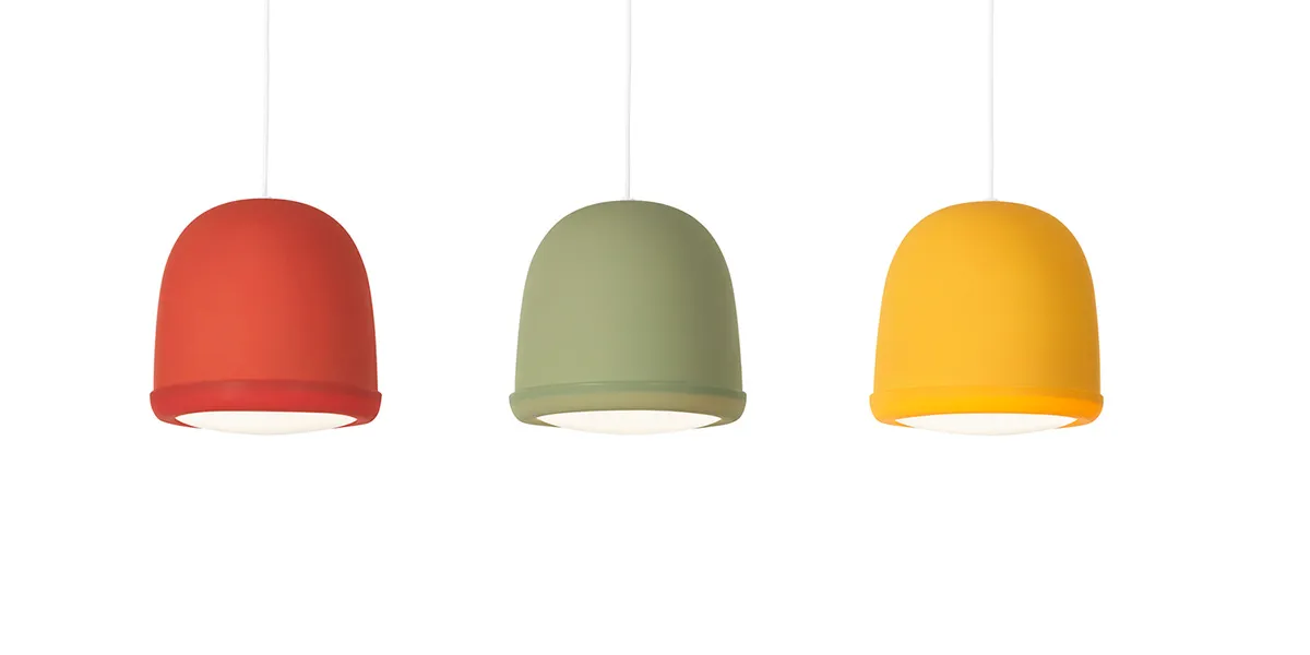 Loosely translated as “all fruits”: perhaps a pear, a peach or an orange, ripe for the picking. Referencing cosy interiors and classical spherical fixtures, Tutti Frutti provides a gently inviting feeling through its warm colours and soft surfaces. Just as elegant as subtly playful; just as Zero as classical Scandinavian design. Furthermore, Tutti Frutti’s E27 socket, metal, silicone and plastic are easy to dismantle for recycling. Red, green or yellow rubber painted aluminium, rubber ring and matt acrylic diffuser. D 275 mm, H 280 mm. E27 max 42W.
