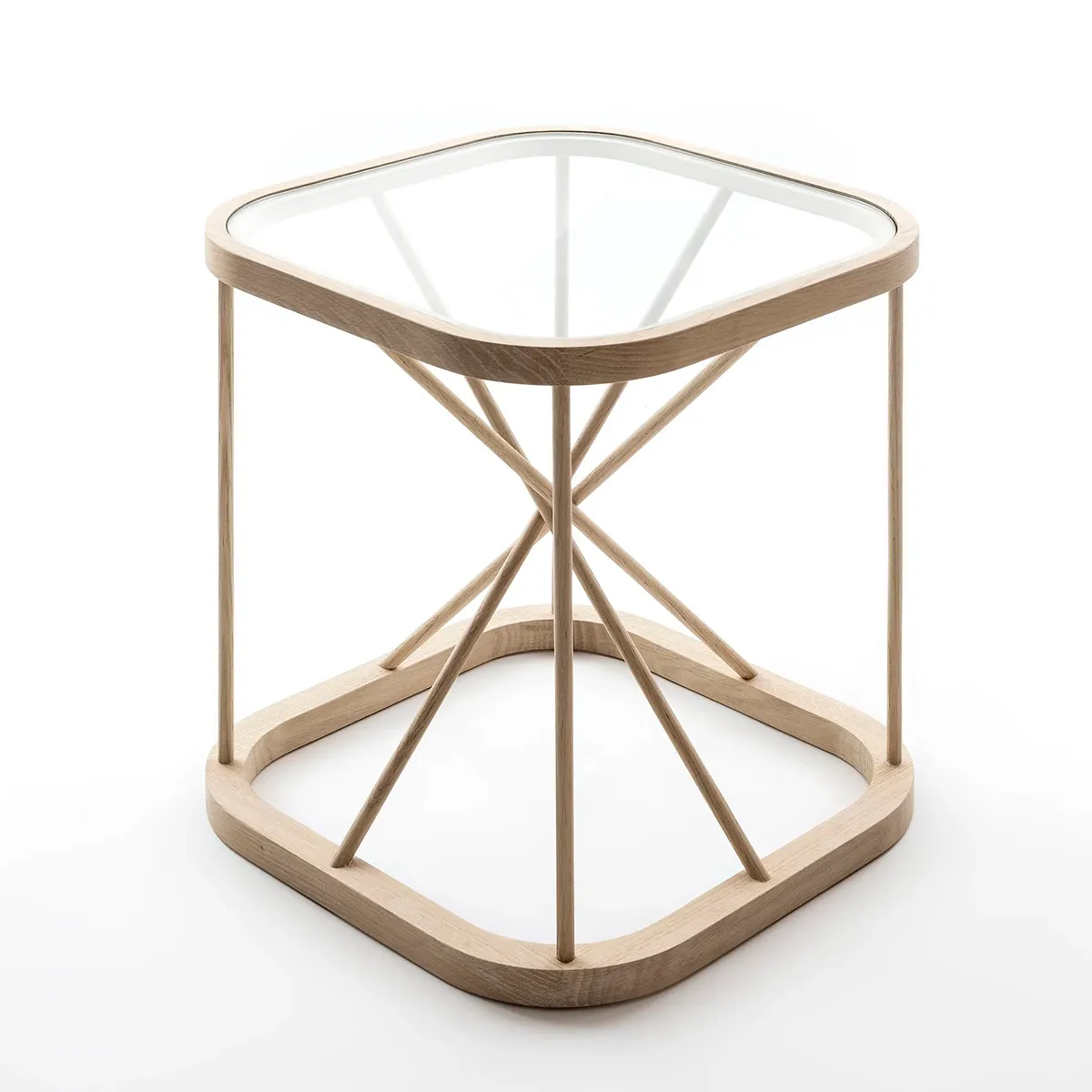 Twiggy is a small visually and physically light side table. The structure is a beautiful play of oak sticks, which can be seen under the glass top. This table is multifunctional and easy to move around. Oak frame is polished with wax. Design Ilkka Suppanen and Raffaella Mangiarotti.Come and check out our new products at our stand!