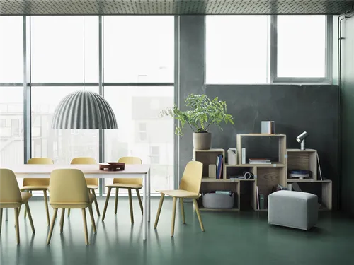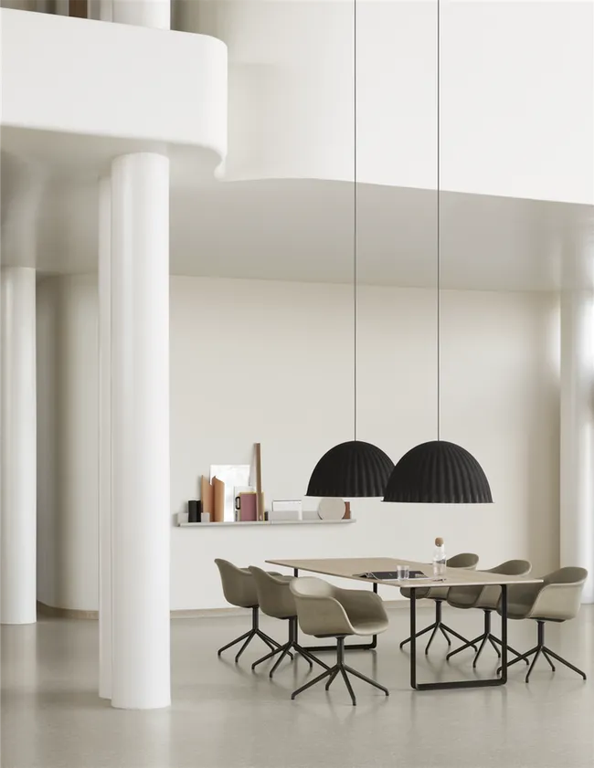 Under The Bell is a pendant lamp that is multi-functional as the design not only provides an ambient light but also enhances the acoustics of the room. With its raw, tactile texture that comes from its shade being produced using recycled plastic felt, Under The Bell is an example of modern design with hints to Scandinavian values. Available in black and grey, the lamp blends effortlessly into open spaces such as restaurants, hotels, work environments and education institutions.