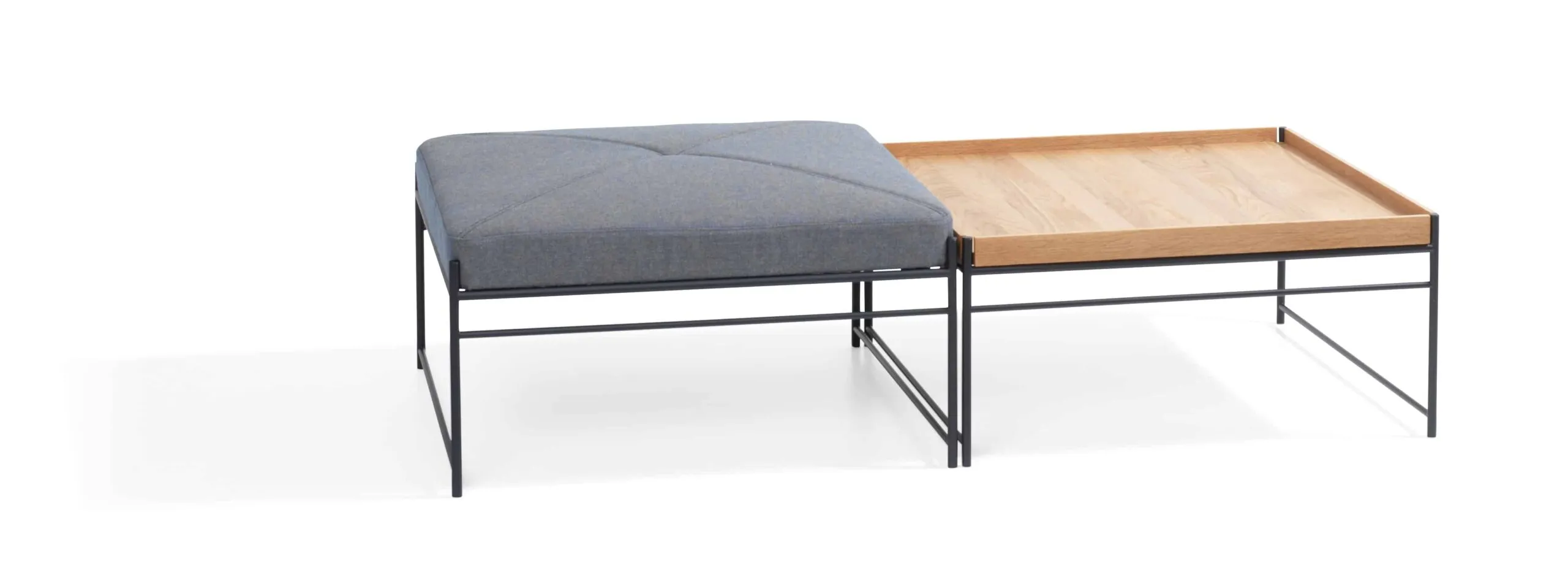Unit is based on two key characteristics to adjust to different architectural spaces. The first is that it gives a light impression. With its thin seat upholstery held by a frame configured in horizontal and vertical lines, Unit exudes the impression that it is floating above the floor.