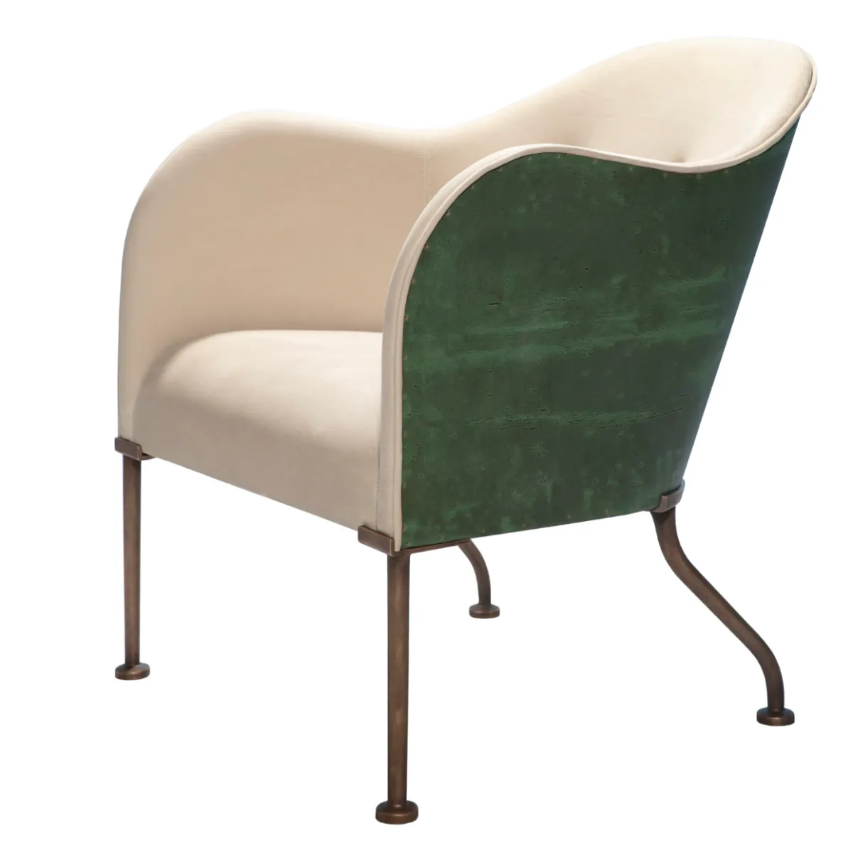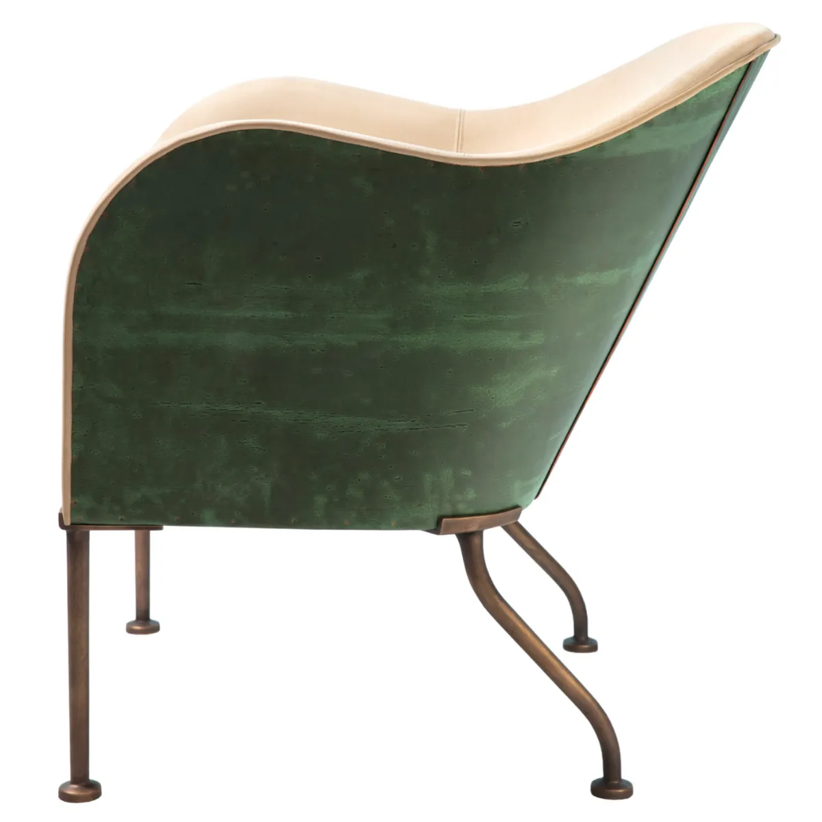 Verdigris coated copper plates from the Petri Church in Klippan. Armrests in ebony, coppered steelframe. …