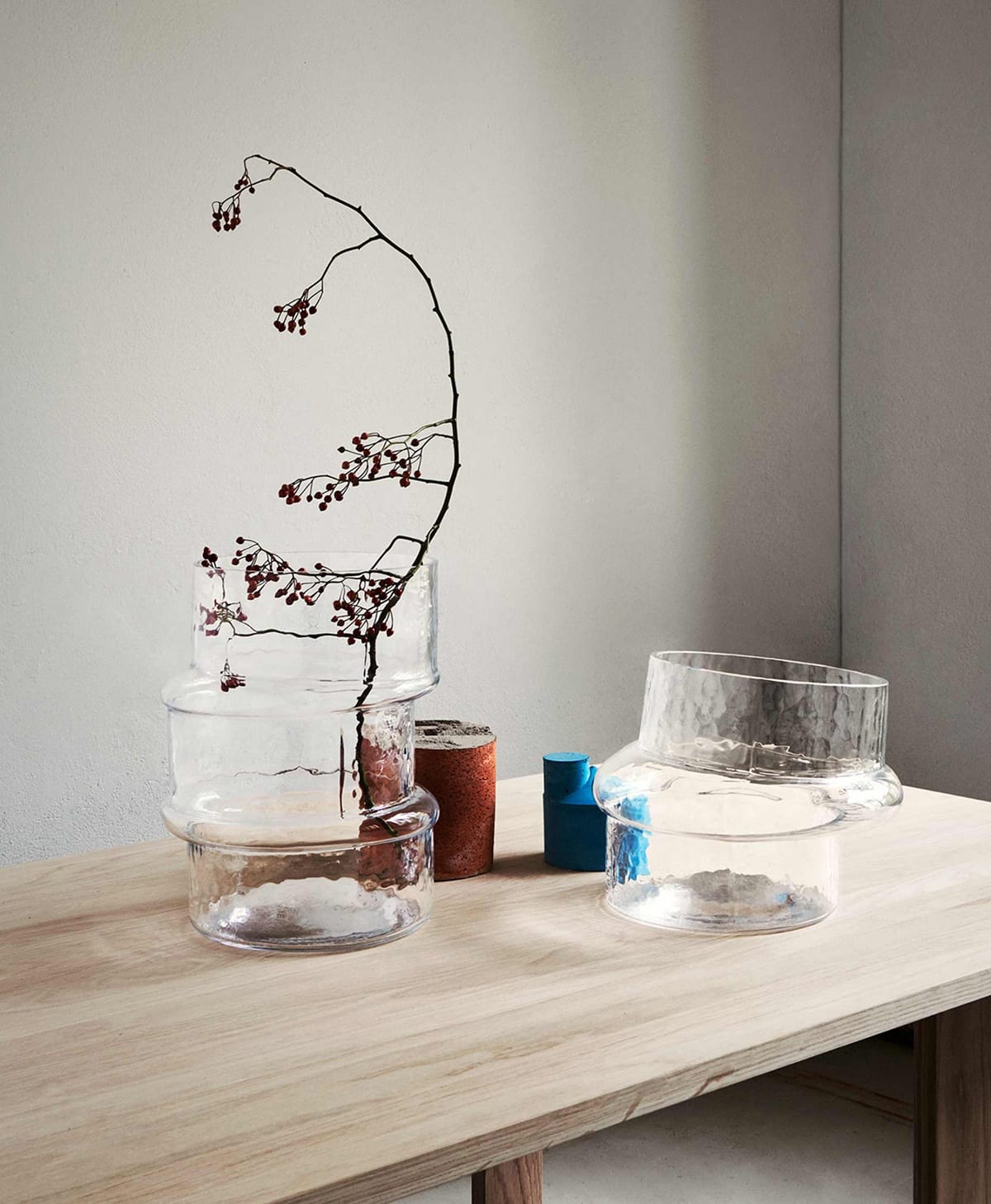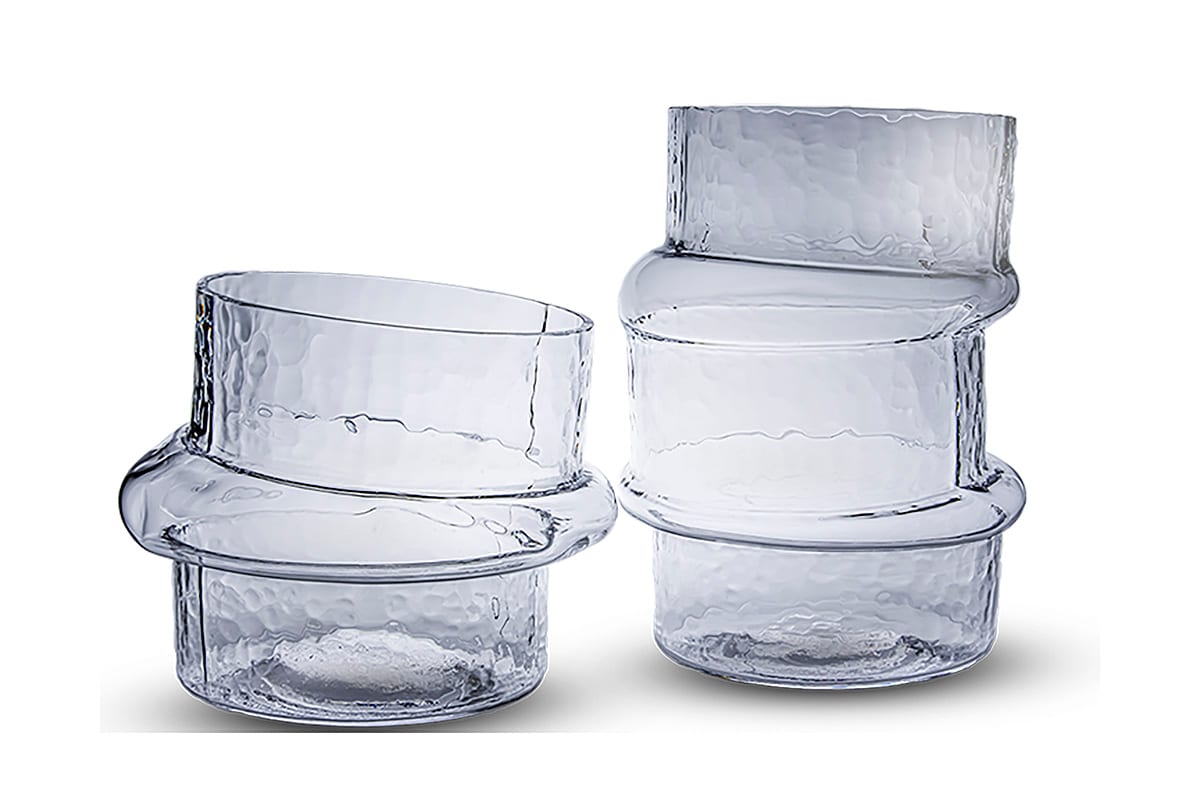 The glass is blown in a special, skewed shape, making each vase unique. Available in two sizes.