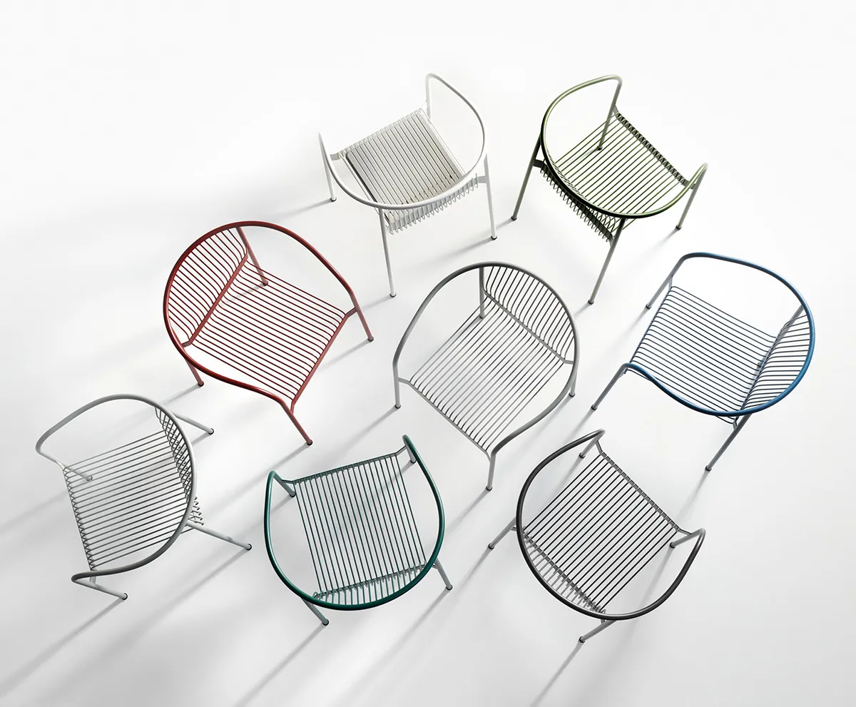 Björn Dahlström’s latest creation for Plank transforms the concept of wire-frame seating into pure poetry. Launched at Salone del Mobile 2022, the VELIT chair represents 25 precisely positioned metal lines that interact “very much like a pen drawing,” creating both structural integrity and visual grace.