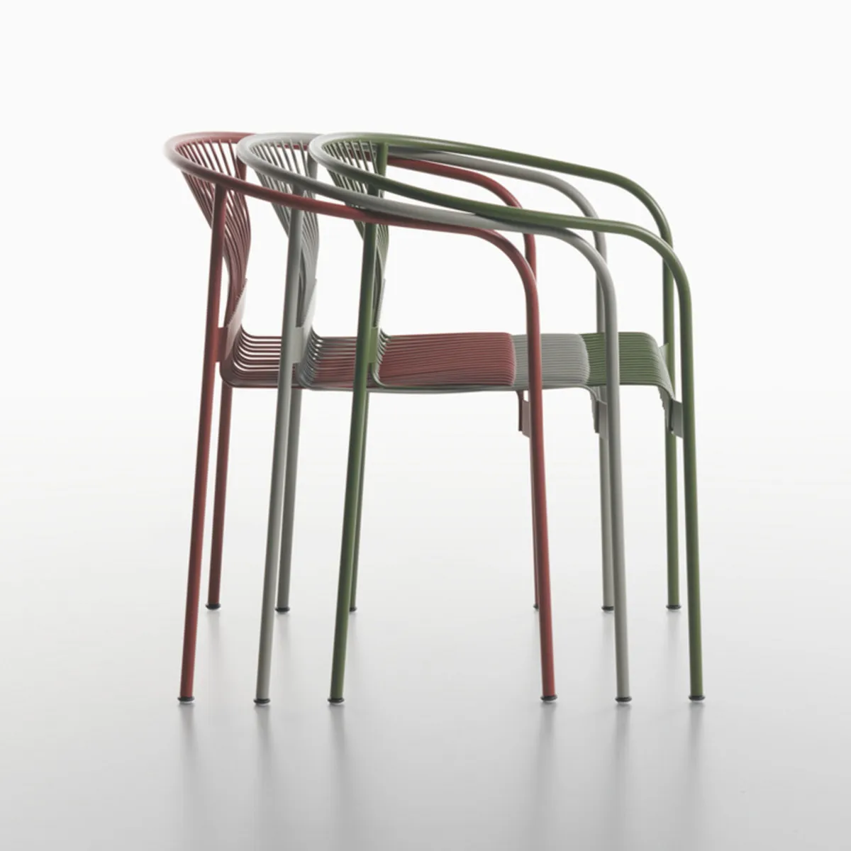 The powder-coated steel frame comes in six sophisticated colors: ocean blue, moss green, olive green, concrete grey, white, and black. Each finish is weather-resistant, making VELIT equally suitable for indoor and outdoor applications.