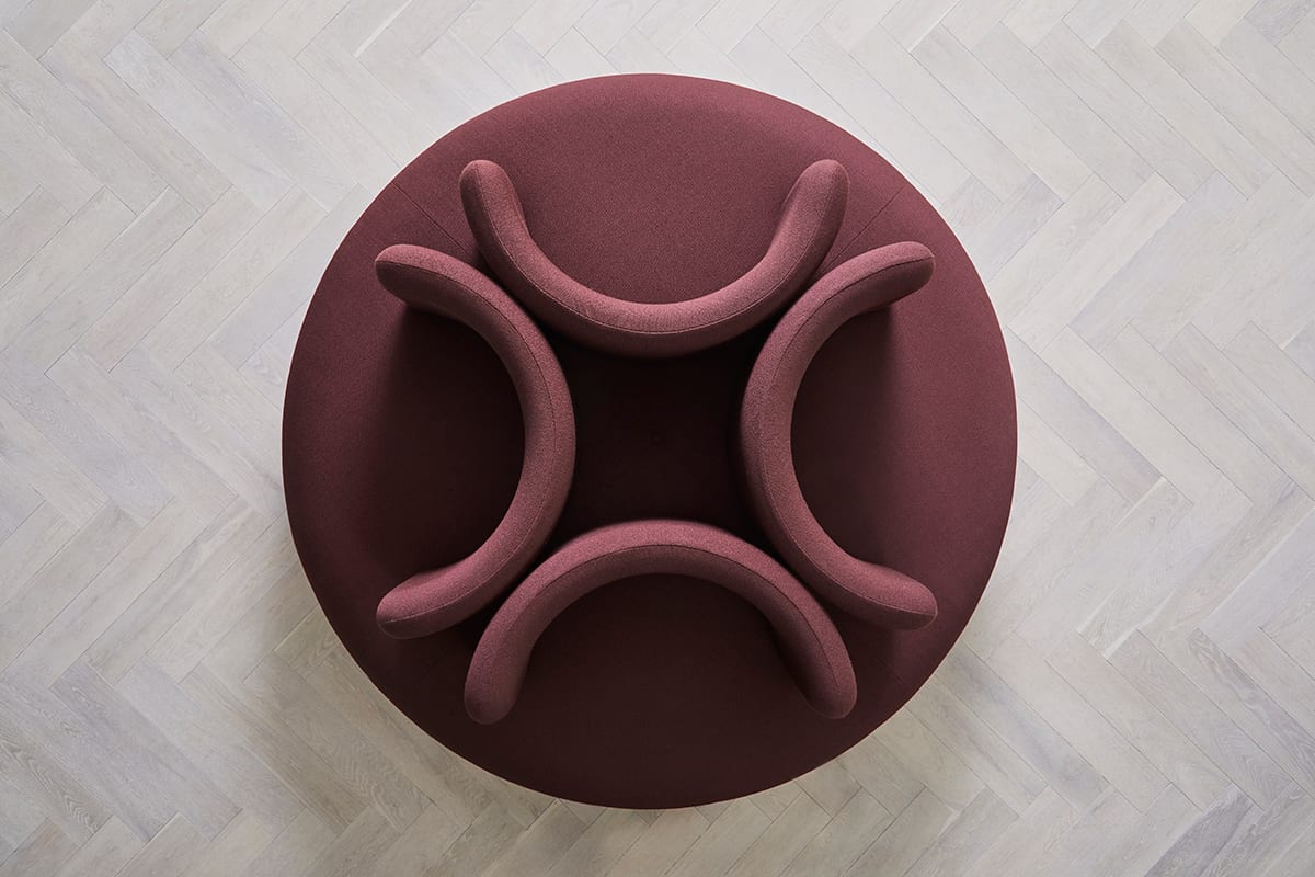 The round shaped Easy Sofa has four U-shaped backrests giving you four individual spaces, where you can enjoy a relaxing moment. The backrests doubles as armrests as you change your seating position. The sofa offers generous seating space and has improved seating comfort. It comes fully upholstered and is available in a wide range of fabrics and colours, allowing you to tone the design up or down depending on your style preference.