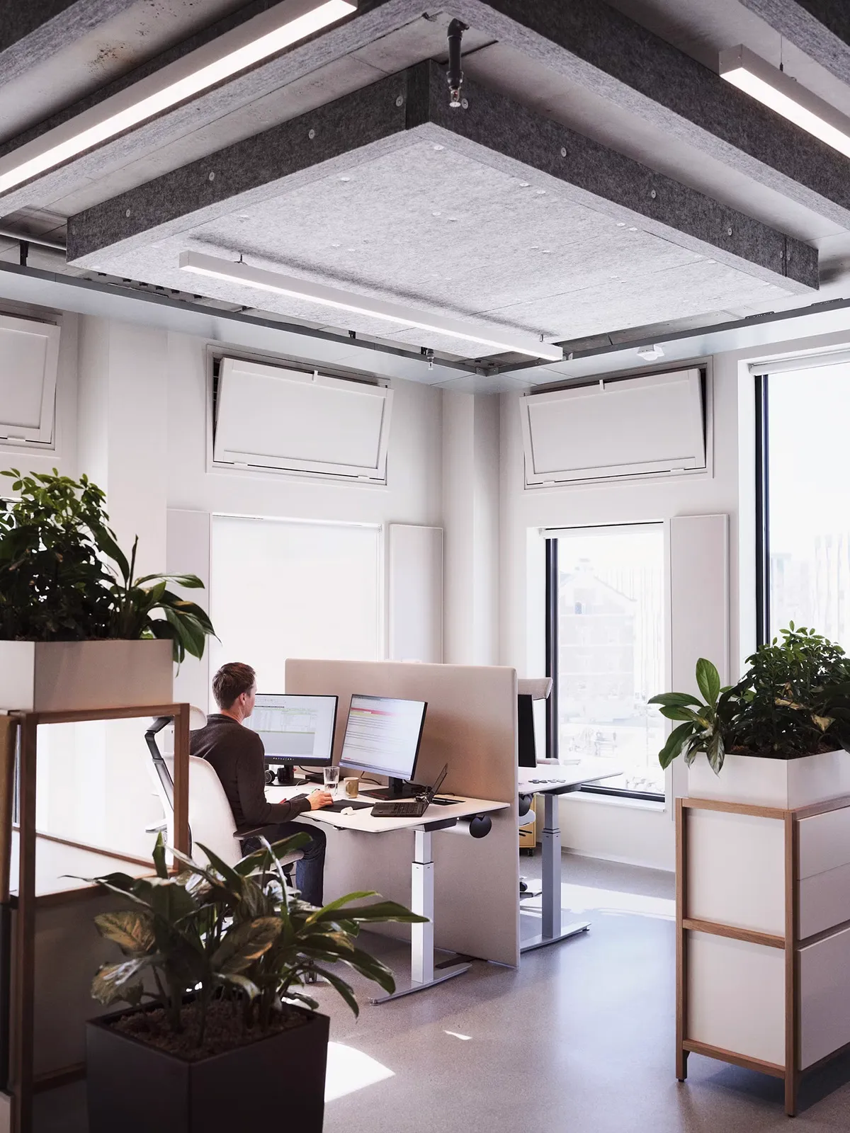 Vertikal Nydalen is a pilot in two research projects on sustainable energy solutions. The building has a simplified and self-sufficient climate system, and is Norway’s first naturally climatized mixed-use building made for the urban and housing developer Avantor.