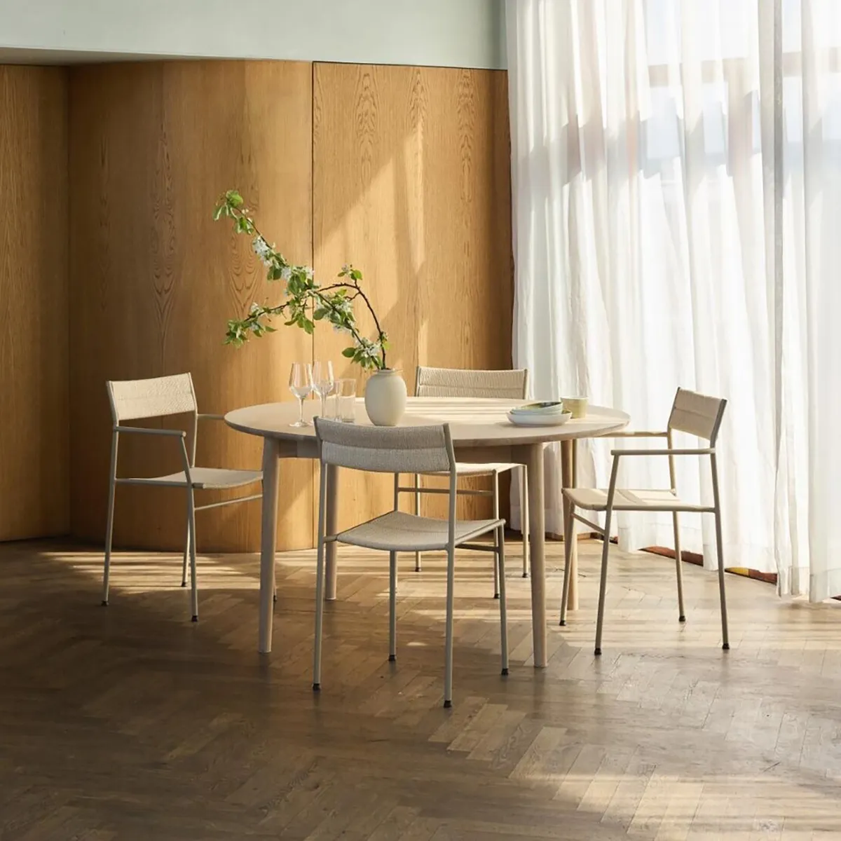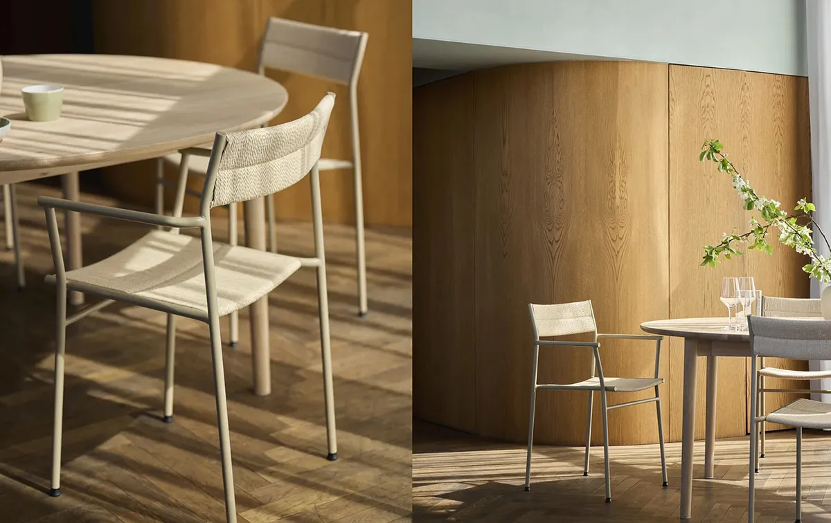Meet Vev, Northern’s new dining chair series that pairsmodern minimalism with time‑honored weaving craft. Itssimple steel frame uses minimal material while cradling 110meters of hand-woven paper rope for a natural look andoutstanding comfort. Named after the Norwegian word for“weave,” Vev blends tradition with modern needs: a strong silhouette, small footprint, and easy mobility.