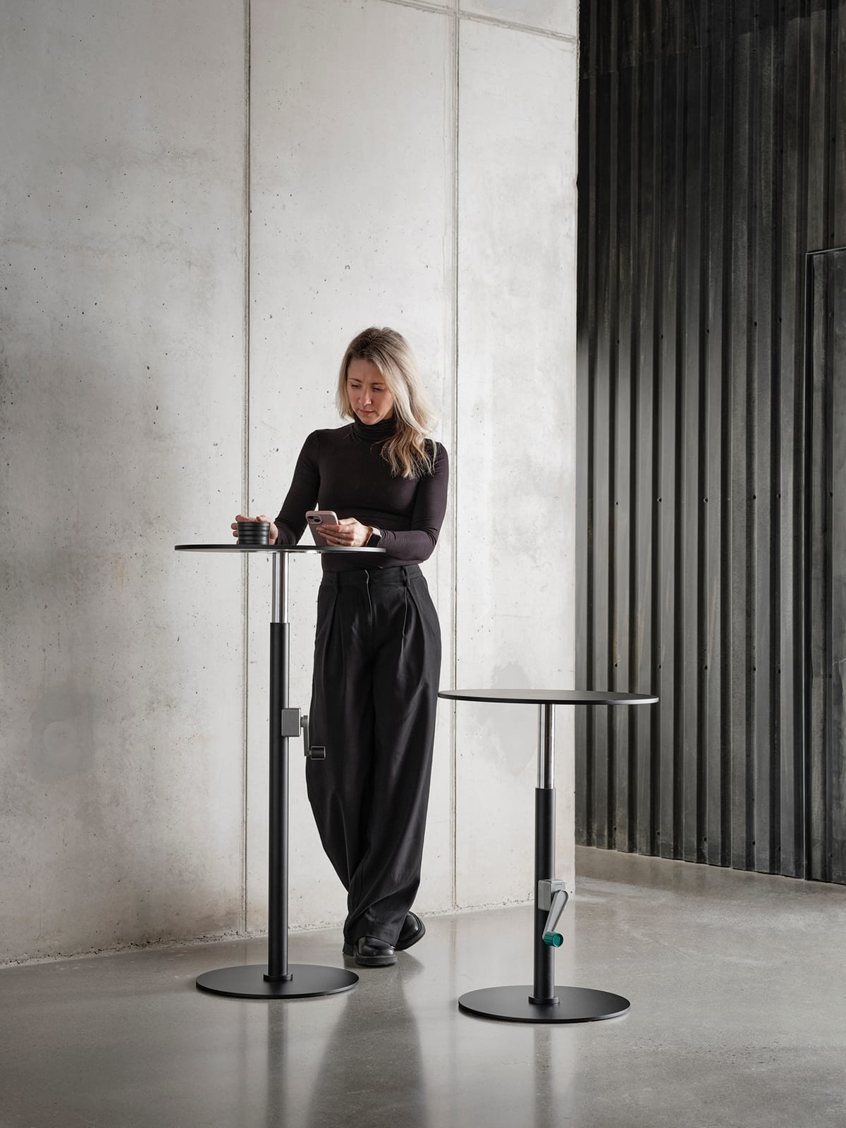 VEVA stops in the desired position. If you want a table height of 611.5mm, VEVA offers it. VEVA is available in 4000 different heights if we count every millimeter.