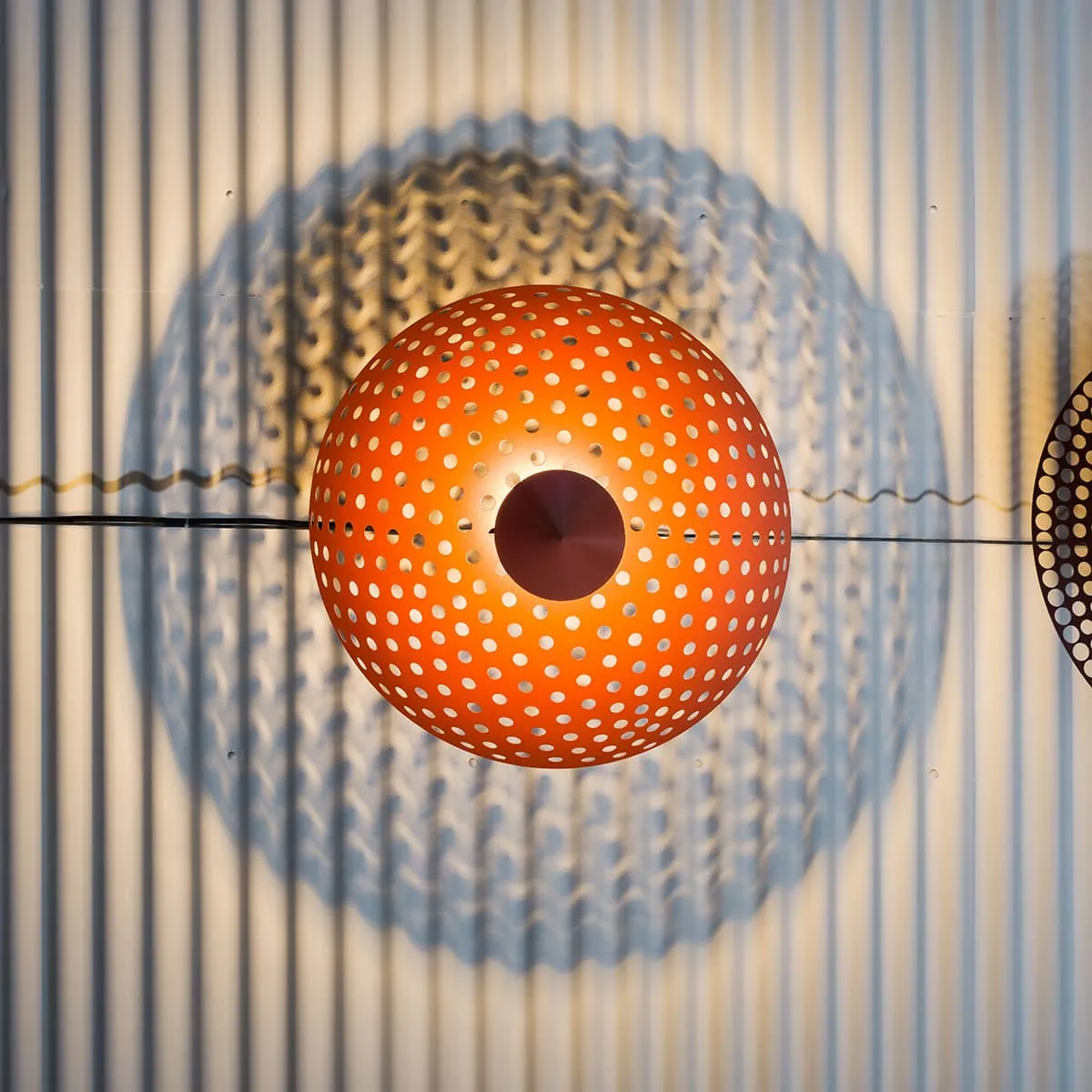 The ”Original” has a pattern that allows for more light to be reflected downwards. The ”Flat Sphere” creates an illusion of being a sphere, by still being completely flat. The ”Fade” centers the reflected light, while allowing for more light to seep through the further away from the center it gets´.