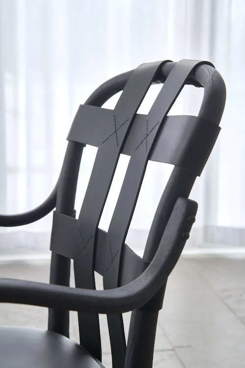 VILDE has an embracing backrest of hand-sewn straps of vegetable tanned leather.