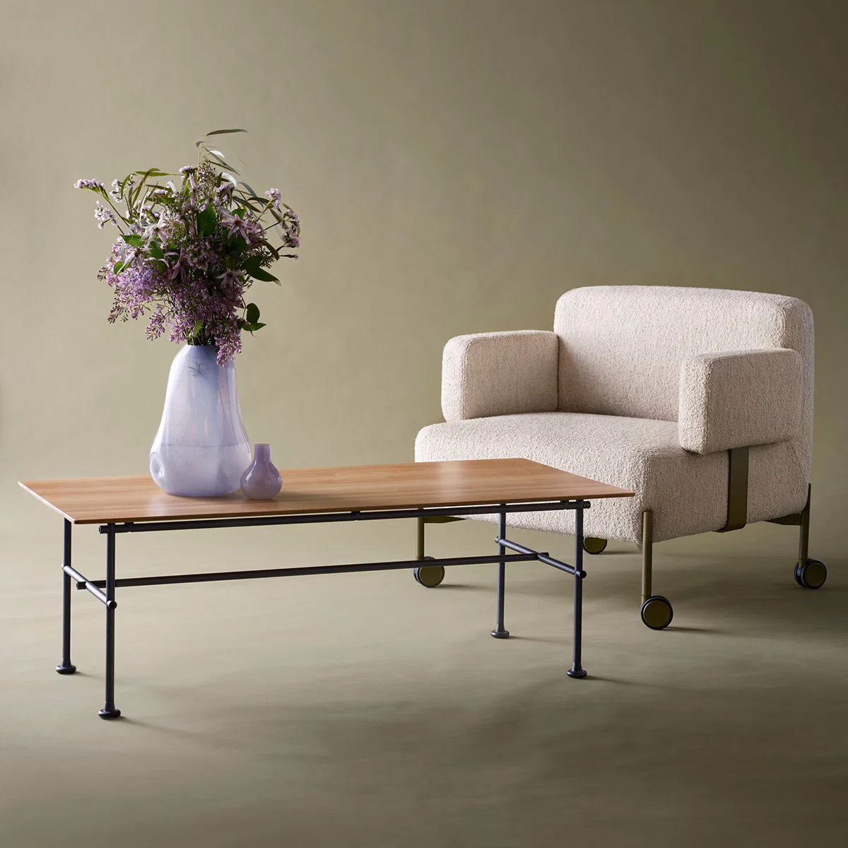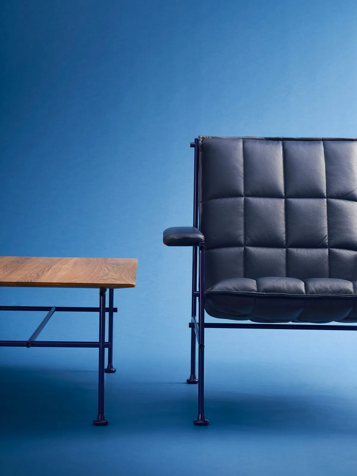The steel construction and zinc‑cast joints ensure that every armchair, footstool and table can be upgraded, renewed, and easily separated.