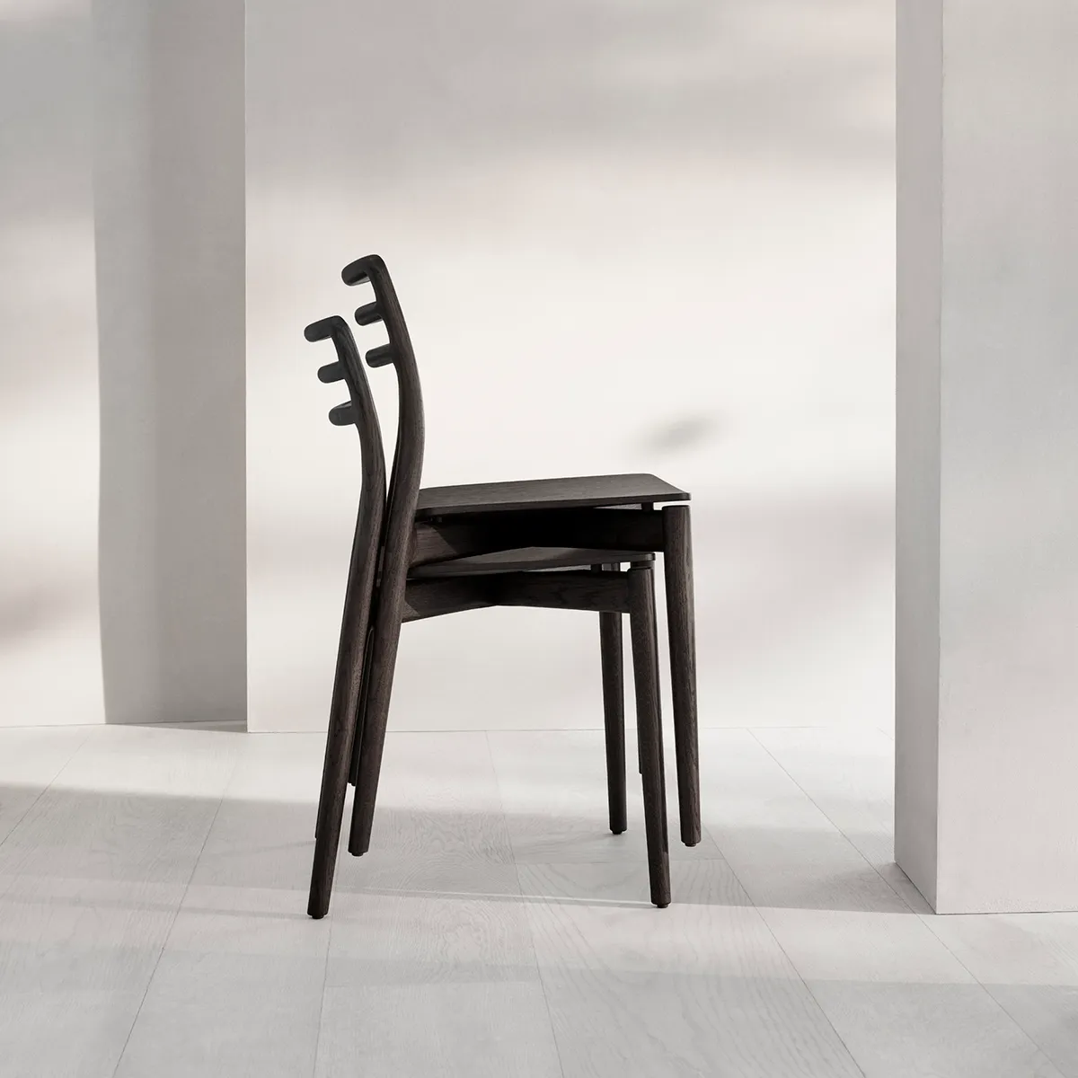 Originating from a legacy of 80 years in steel manufacturing, the Vipp Cabin chair is the very first solid wood furniture piece by Vipp. The organic idiom is expressed by its softly rounded components and a curvy backrest constructed in either light or dark oak.
