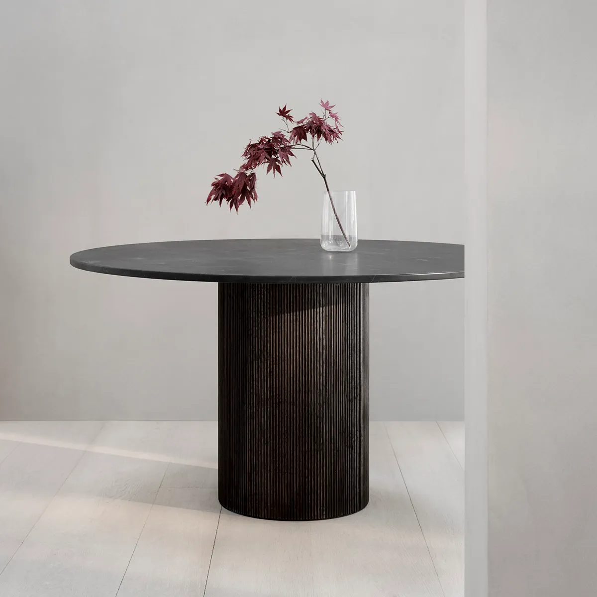 The Vipp Cabin round table is a medium-sized table for the dining room or kitchen. This table features a base of solid, oiled light oak with a marble tabletop. The Cabin table is also available in a square version.