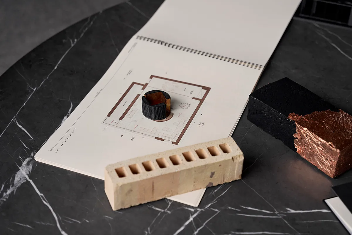 “It’s both warm and cold – cold due to the metal, warm because of its colour. And the tension between these qualities is what interests us, as it illustrates the idea of an encounter between seemingly opposing forces.”
