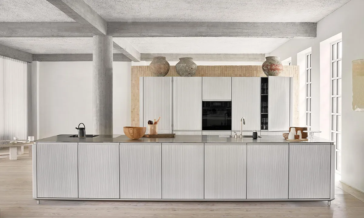 The V3 kitchen is available in three different modules: island, wall, and tall module.