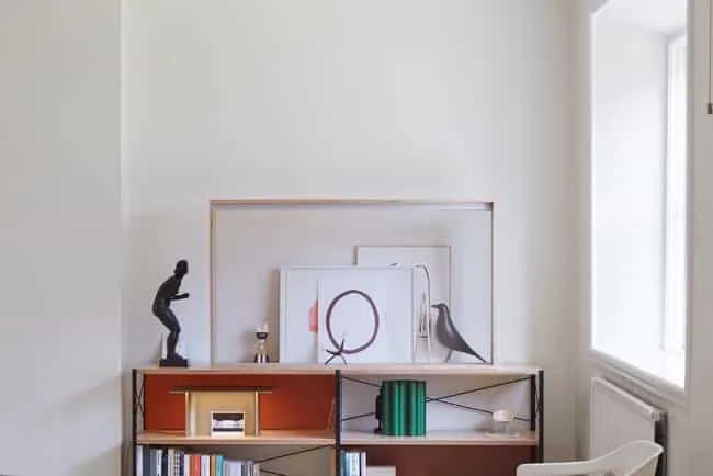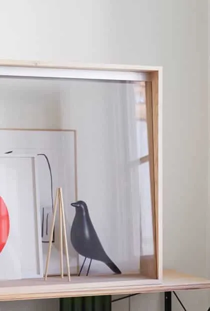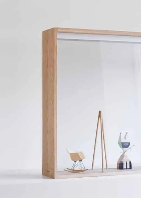 The design sources materials of wood, metal and glass with no physical front or back, allowing it to be placed freely and seamlessly in any space.