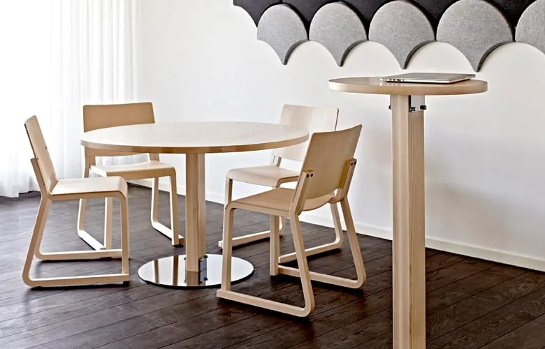 Form isn’t fixed. Form isn’t static. Furniture like Vivi is traditional and functional, and updating this kind of furniture is among the toughest challenges to be found. Success depends on the ability to produce a well-balanced product that captures the spirit of the times. Wooden chair Vivi is a shell chair completely in layers glued ash wood with 4 legs or runners to withstand any environment, from the cafeteria to the auditorium. The chair comes with arm, connecting fittings, folding table and trolley. Vivi stacks in all models with 30 mm repeat which is impressive for a wooden chair. Read the full story on VIVI in our little Pixi book FOCUS, or on our website.