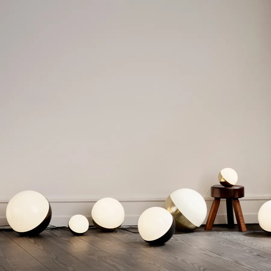 The VL Studio Wall lamps are available in size Ø150. The VL Studio Table/Floor lamps are available in Ø150, Ø250 and Ø320. All sizes come in matt black or in brushed brass.