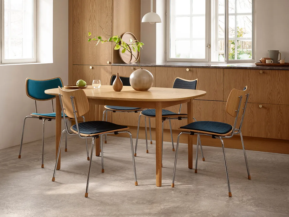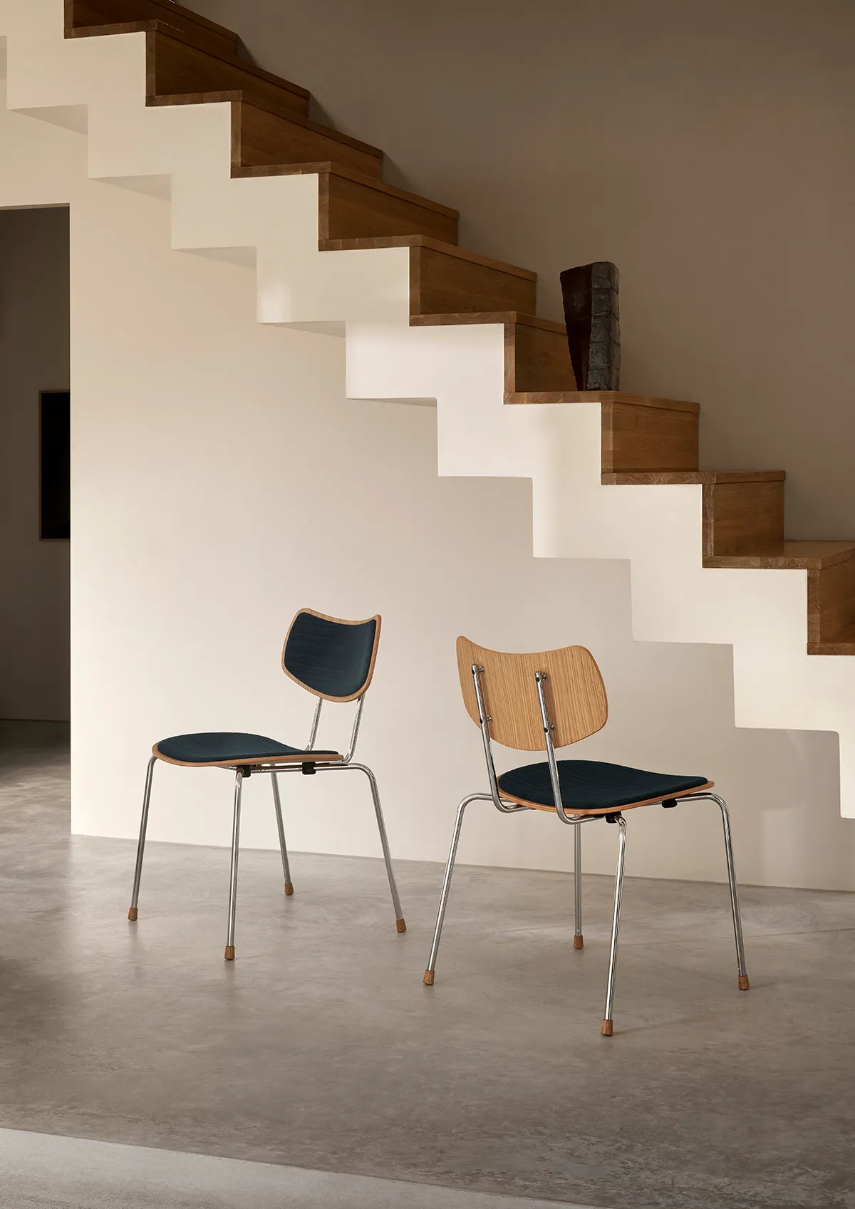 In partnership with Vilhelm Lauritzen Architects, Carl Hansen & Søn launched the VLA26 Vega Chair in 2022, in an elegant mix of powder coated black steel, wood, and textile or leather upholstery. Now, the chair is available in a new variant featuring a contemporary, polished chrome frame.