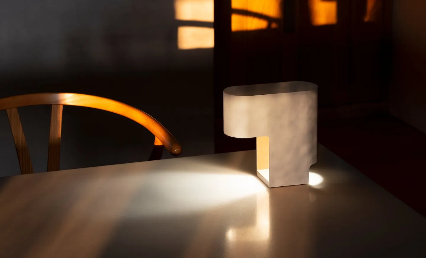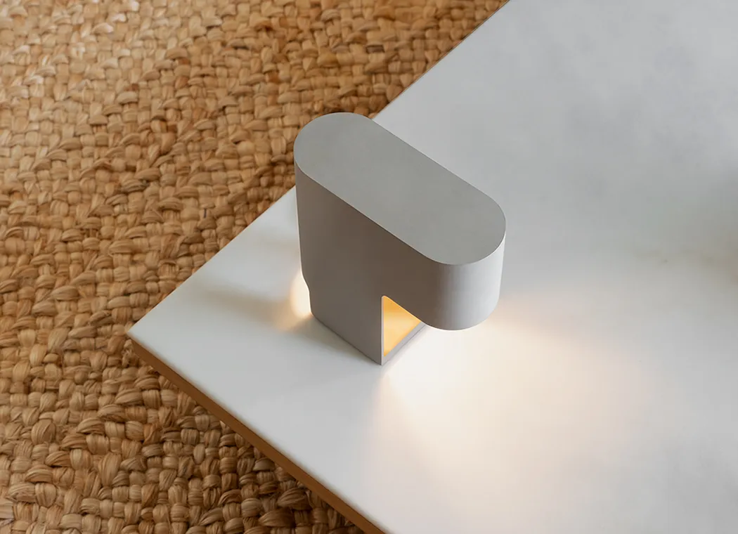 Notched cut-outs in the form contribute detail to the lamp’s distinctive profile, while also serving the functional purpose of shaping the way the light is cast and creating an entry point for the cable.