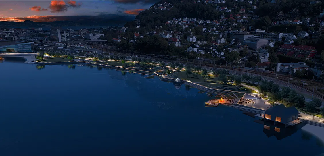 “Water is Bergen’s elixir of life; from the estuaries, fjords and ocean as well as from the sky. It therefore characterises our entire proposal. The vision is to create an attractive and inclusive meeting place for movement, recreation and events of various kinds all year round. We are pleased to have been able to interlace a concept of design excellence, sustainability and local engagement. Already at this stage, we have involved local collaborators in order to succeed in the identity creation, including an art association, a high school, Bergen’s Aquarium and an environmental organization. Their input has been an important aspect of the design of the park.”