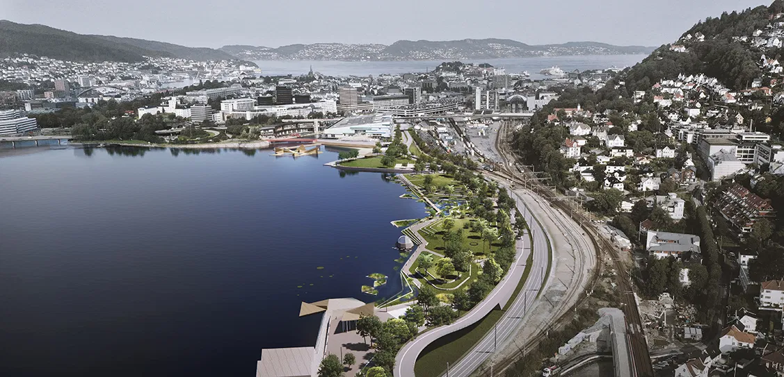 In connection with the extension of a new tram route, Lungegårdsparken will be expanded and upgraded. In the competition brief, the municipality of Bergen asked for an identity creating public space that will become the best park in Bergen for 100 years. It will offer a wide range of activities and recreation areas, while providing innovative solutions for environmental and climate adaptation.
