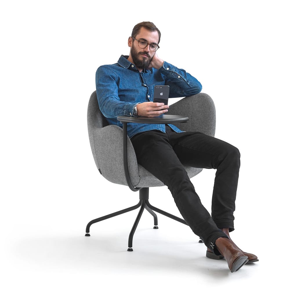 A hybrid between the size of an office chair and the comfort of an easy chair – a thinking side, with a raised armrest that helps you to relax, and an active side, with different tables for different purposes. We gave Wilmer T two table and work surfaces. Otherwise, where can you set down your wine, coffee or juice when you pick up your laptop? Or vice versa. Wilmer, a hybrid for the new generation, which works just as well for everyone, regardless of age.