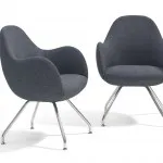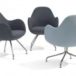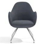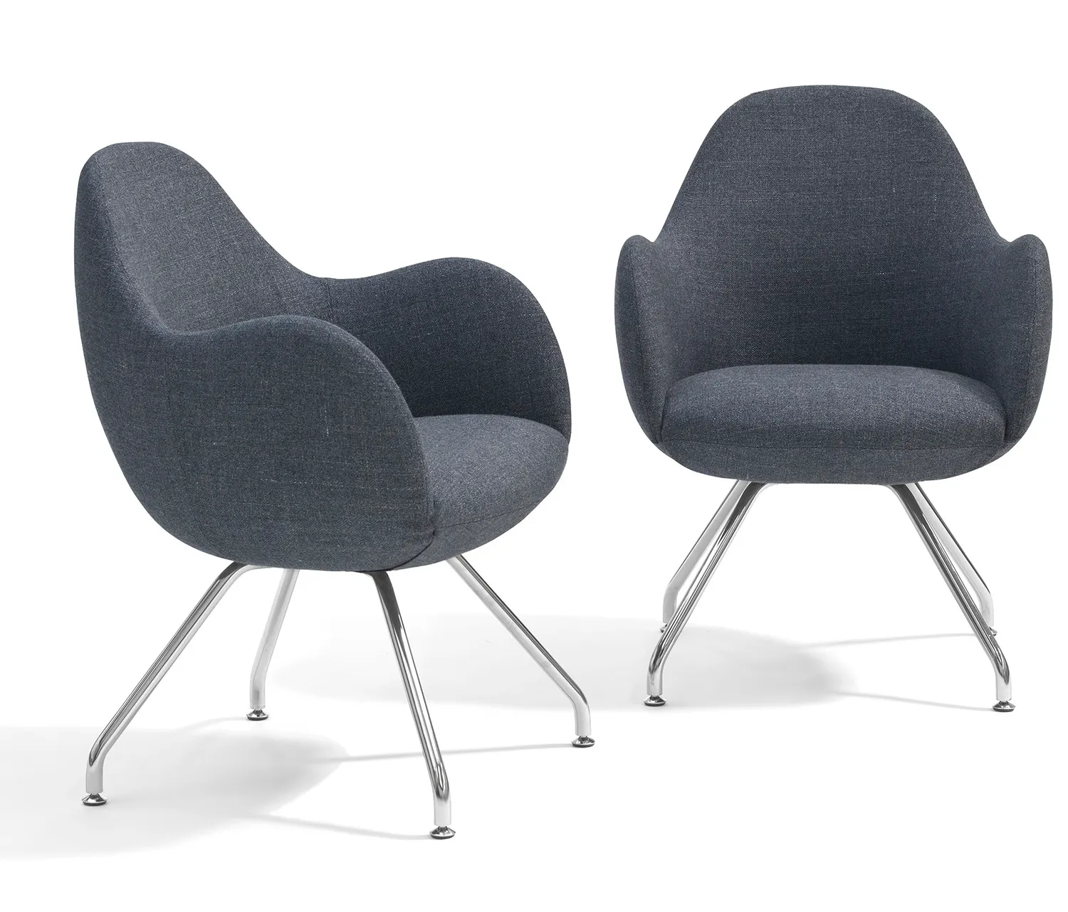 Wilmer is a hybrid between a dining chair, an office chair and an easy chair. And was in 2011 when the unequal Wilmer with one high and one low armrest arrived, the first of its kind. Wilmer retains all the advantages of the various chairs that are traditionally used for “active sitting”, such as the higher seat height and the compact size. But it combines these with the upholstery of an easy chair to provide a more relaxing, more comfortable seat. A comfortable upholstered conference chair or a neat little easy chair depending on the context in which it is used. Wilmer C has four legs, but can also be fitted onto the same under-frame as Wilmer T and Wilmer S. Now that Wilmer has started a family it might continue to grow, so keep a lookout!