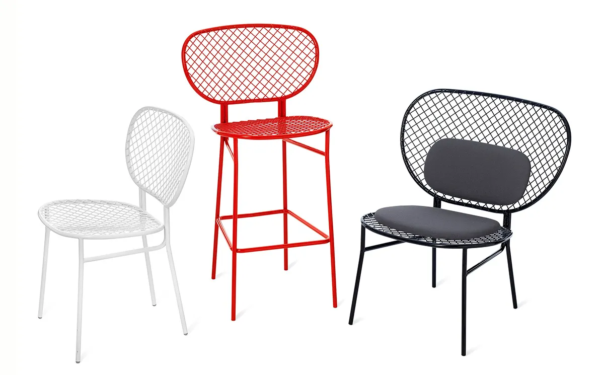 This racket-inspired design is likely to score points with any sports enthusiast, especially if a tennis court is nearby. Made to compliment the tables and chairs in the Wimbledon series, the barstool’s net-like panels are crafted from sheet steel, providing a durable and comfortable alternative to metal mesh. The barstool joins the other tables and chairs in the Wimbledon series.