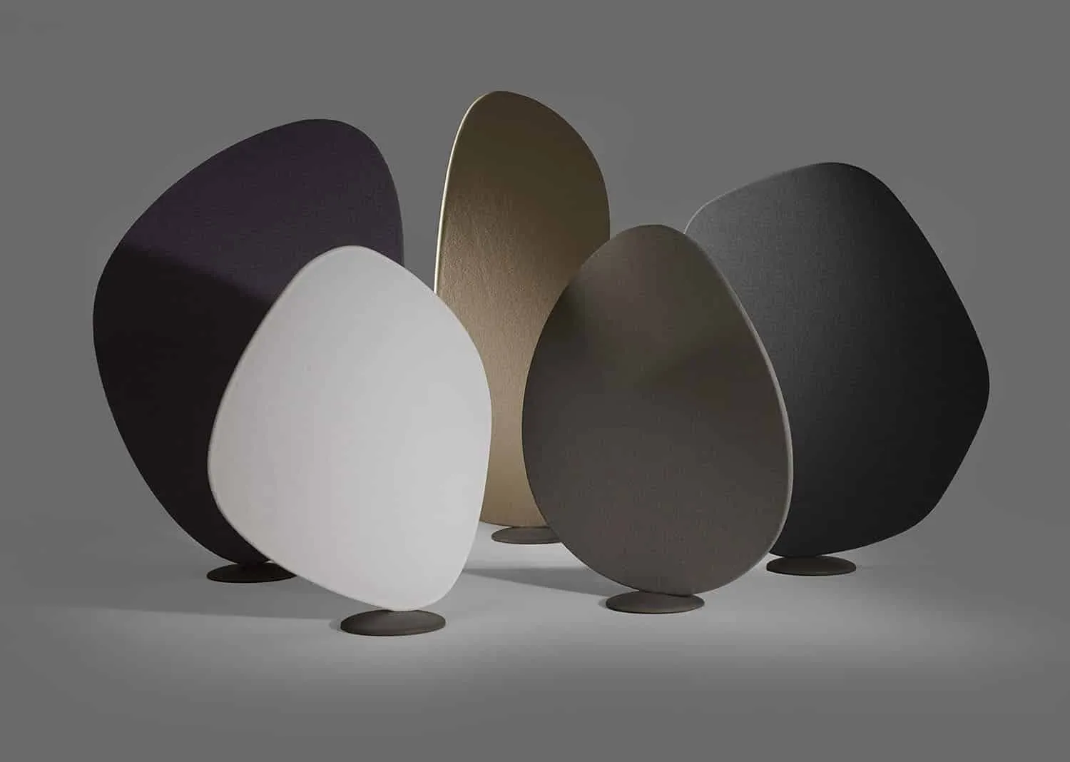 “These room dividers are a concept more than individual products. They can be seen as a celebration of the beauty of nature — a forest of organic shapes that also control acoustics like a kind of tuner, and that make the environment more pleasant and friendly. My inspiration always comes from nature. There are no more perfect shapes than those of a snowflake, a bee hide or a leaf. I think that it will be very nice to have these room dividers as reminders of nature’s beauty in a hospital or a large office landscape, for example. They also make it possible to speak in private even in acoustically chaotic environments.”