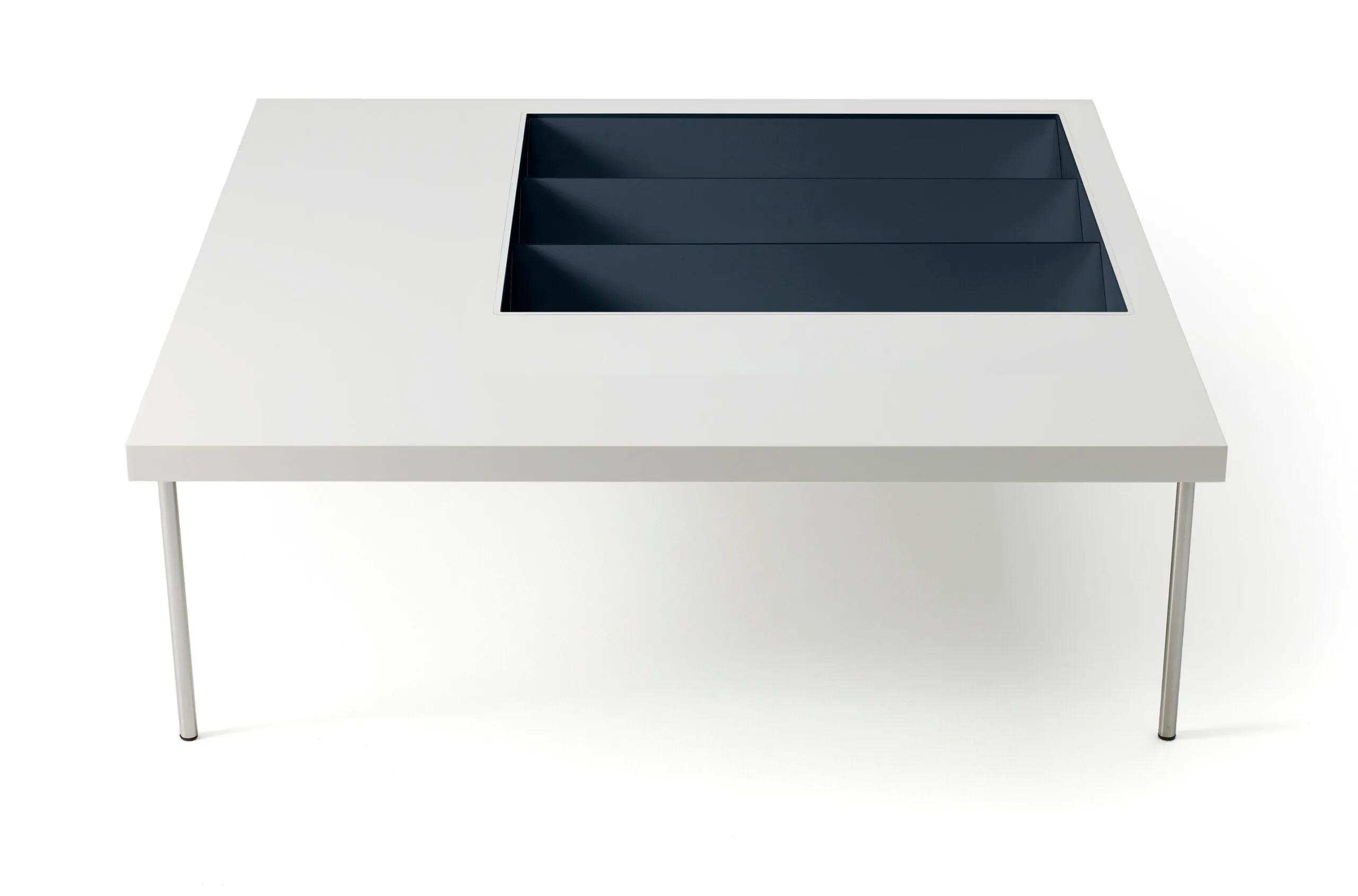 WINDOW is a table with a tabletop in white lacquered MDF with coloured glass and legs in chrome. Now Eero Koivisto presents WINDOW MAGAZINE for storage into WINDOW by replacing the original glass with an insertion for books and magazines.