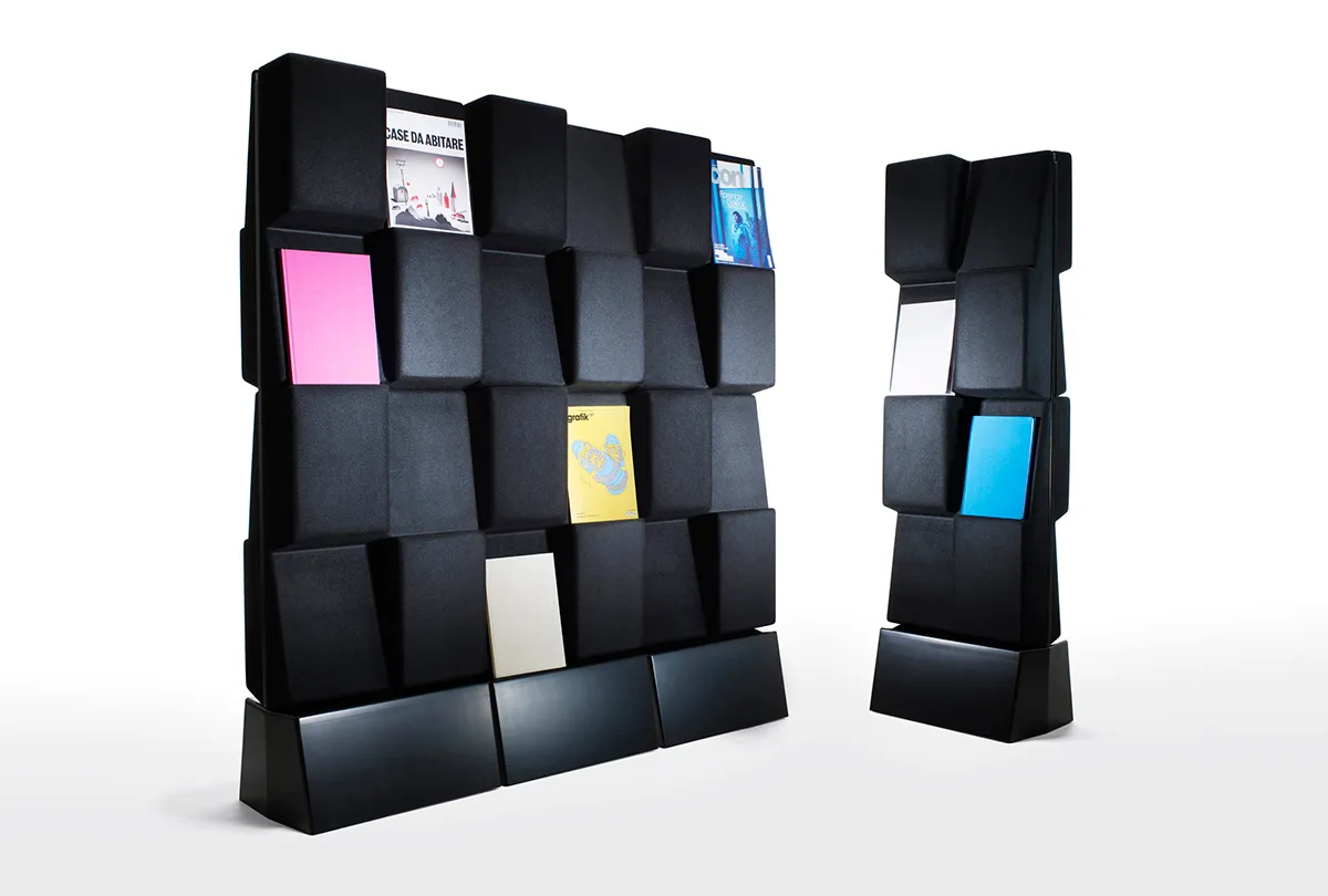 Jonas Forsman has addressed this need in Window, a functional piece of furniture from Abstracta. Window is a magazine display that works as a sound absorber or a sound absorber that works as a magazine display.