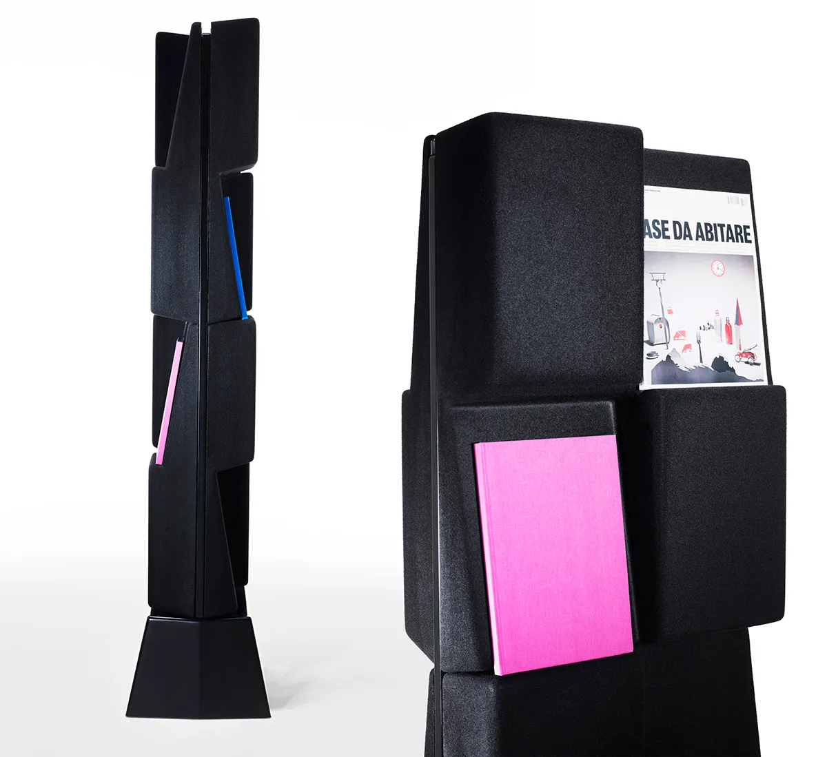 Jonas Forsman has addressed this need in Window, a functional piece of furniture from Abstracta. Window is a magazine display that works as a sound absorber or a sound absorber that works as a magazine display.