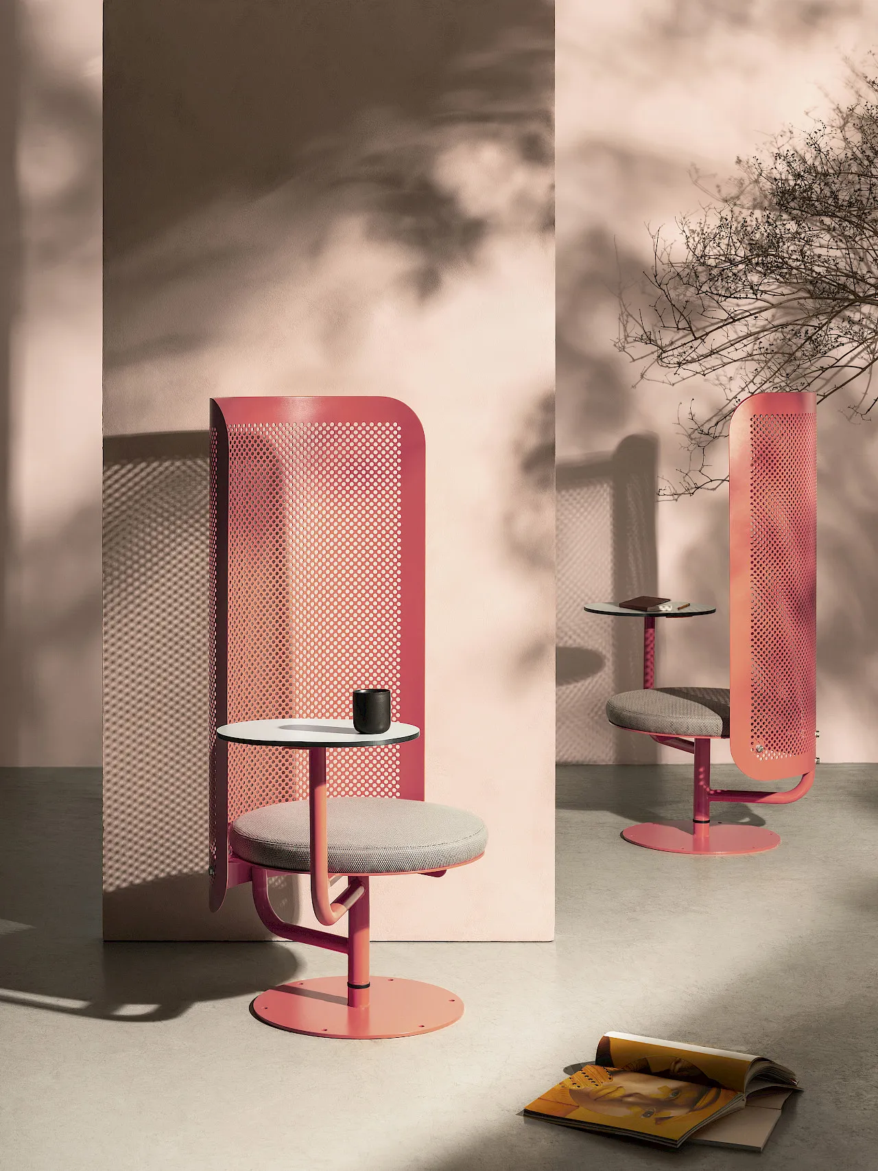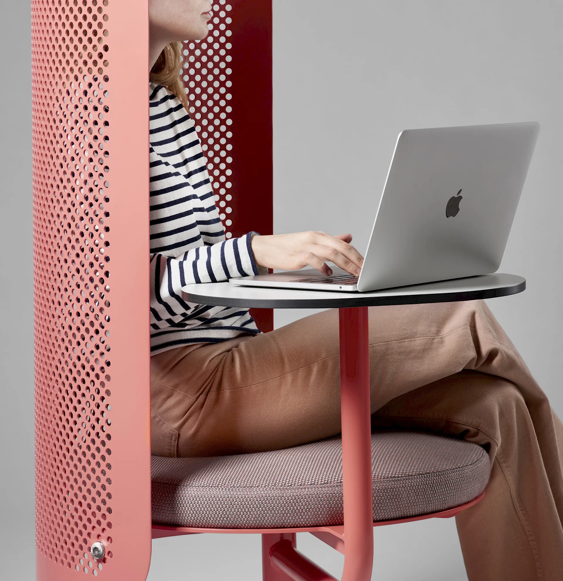 Work Lounge is a response to society’s rapid expansion and the need for functional and practical outdoor workplaces. A workstation with a swivel seat in soft dry foam, with a laptop-adjusted table. The pieces also have an extra high, but slightly transparent back rest, for a sense of privacy.