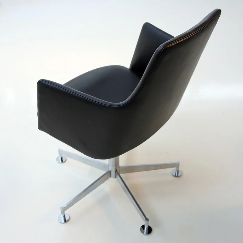Onecollection and I “found each other” in a draw, and so the name Fortuna was obvious for this minimalistic, slimm shell chair which with it’s well- formed thinly upholstered body and arms and with loin support making it possible to make a long row of comfortable conference chairs, working chairs and dinning chairs – chairs with high or low back – chairs on castors, on runners, on legs, with rock back and forth in wood or metal.