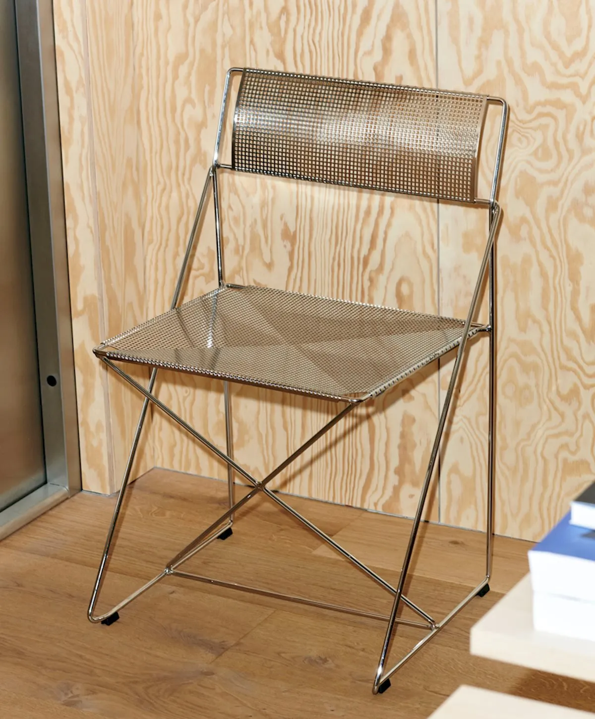 The Danish designer behind the chair Niel Jørgen Haugesen, who worked with Arne Jacobsen in the 60s, was able to embrace this new engineering-based, inside-out approach to design. His carefully thought-out chair offers optimal functionality, with the refined design process resulting in the distinctive X-structure that makes it strong, lightweight, and flexible. “What I love about high-tech design and architecture is its transparency,” says Hay. “It was okay to show everything. It’s a very minimal and transparent chair and it’s showing how it is constructed.”