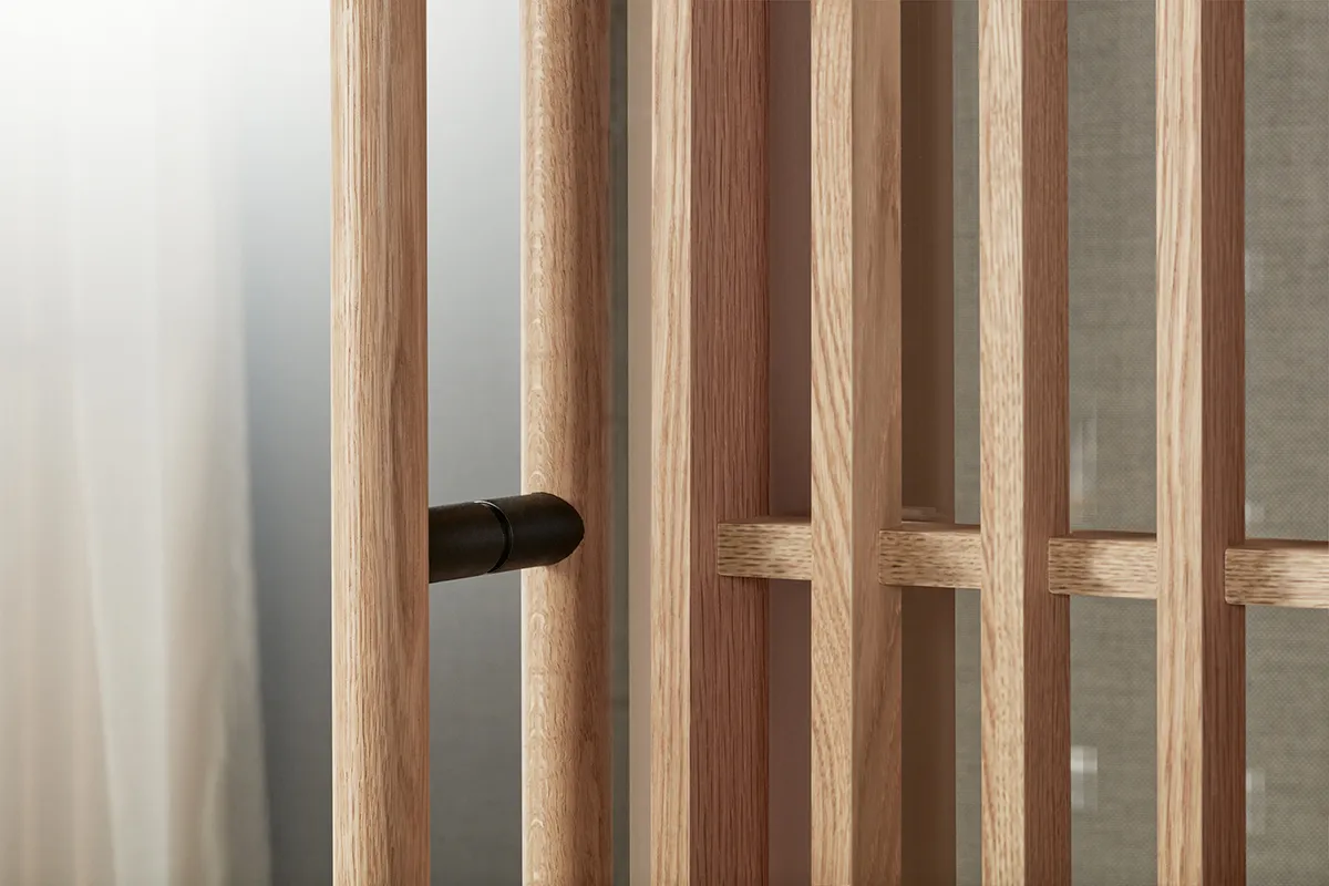 Designer Staffan Holm has worked hard to create a room that is welcoming and doesn’t feel the least bit cramped. “Completely silent rooms can be quite uncomfortable. Zen Pod allows you to sense the surrounding environment without being disturbed by it. The room is quiet; not isolating,” says Holm. Its ventilation is highly effective, yet quiet and vibration-free. The ventilator fan is positioned in the ceiling next to the lighting, thus making it barely visible at all. Zen Pod isn’t a room you want to leave after you’ve done what came to do — but one in which you’re quite happy to stay for a while. Its lines and square composition reflect Japanese aesthetic influences – that become particularly evident with the addition of the beautiful slatted oak wall, which is easily fitted to the room’s glass wall. It’s a solution that enhances the aesthetic experience, improves privacy and positively impacts the soundscape outside the room.