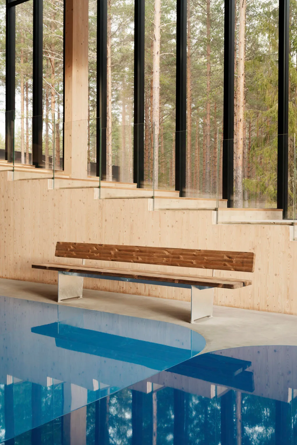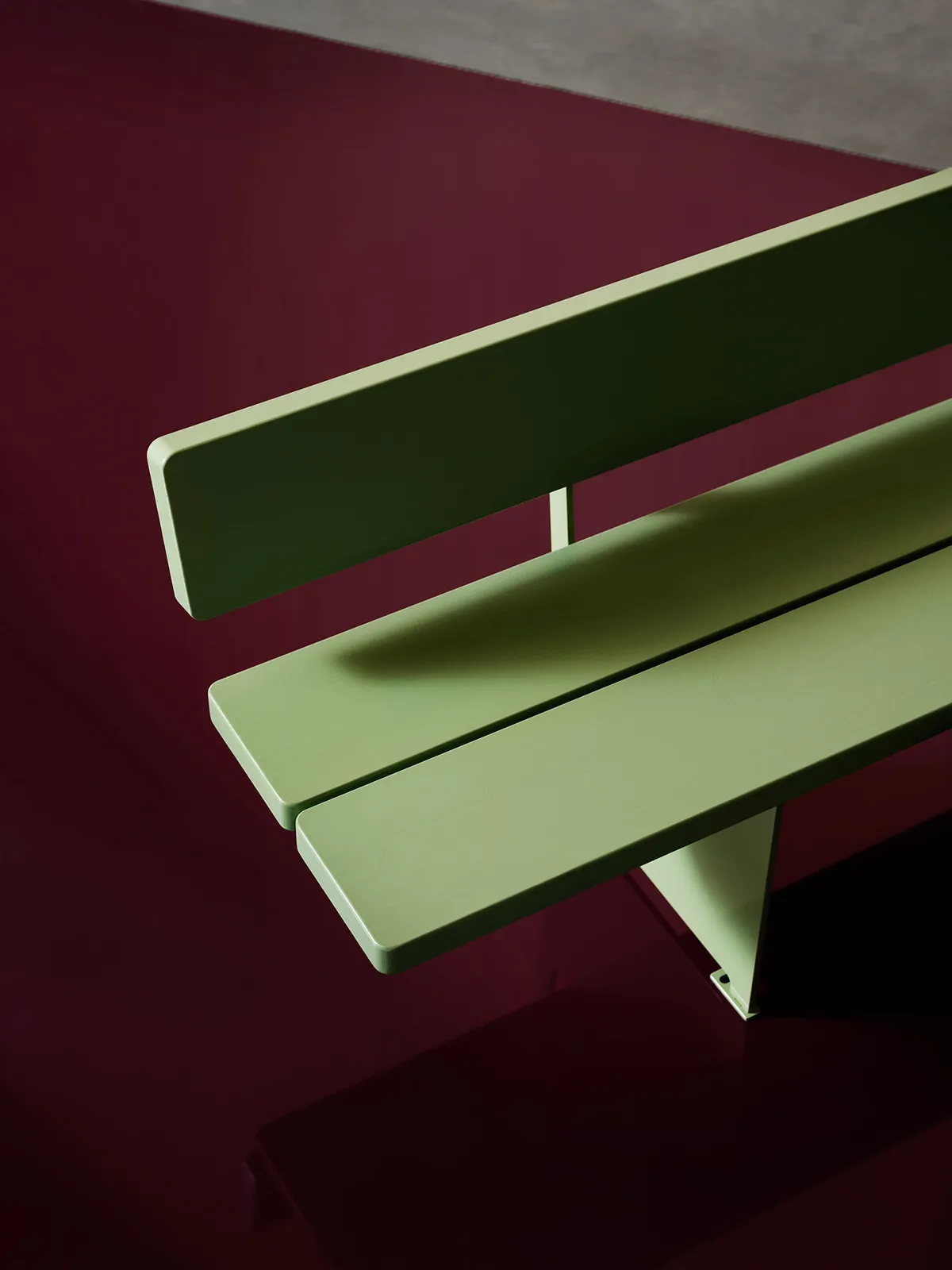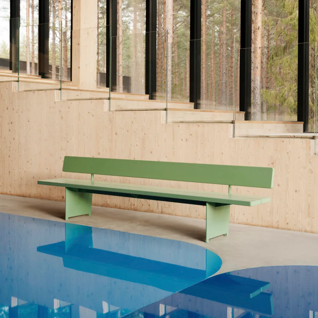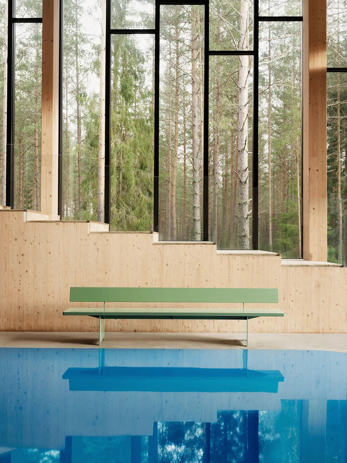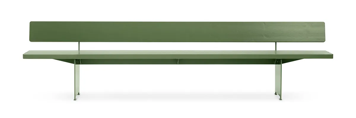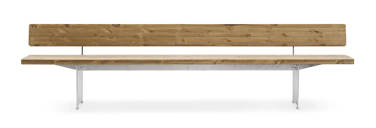 Briskeby works brilliantly as a generous and sociable meeting place with room for many. The bench has a timeless Scandinavian look with expansive steel and wooden surfaces and is elegant and comfortable. It comes in linseed oil-treated Nordic pine as standard. It also comes in painted Accoya.