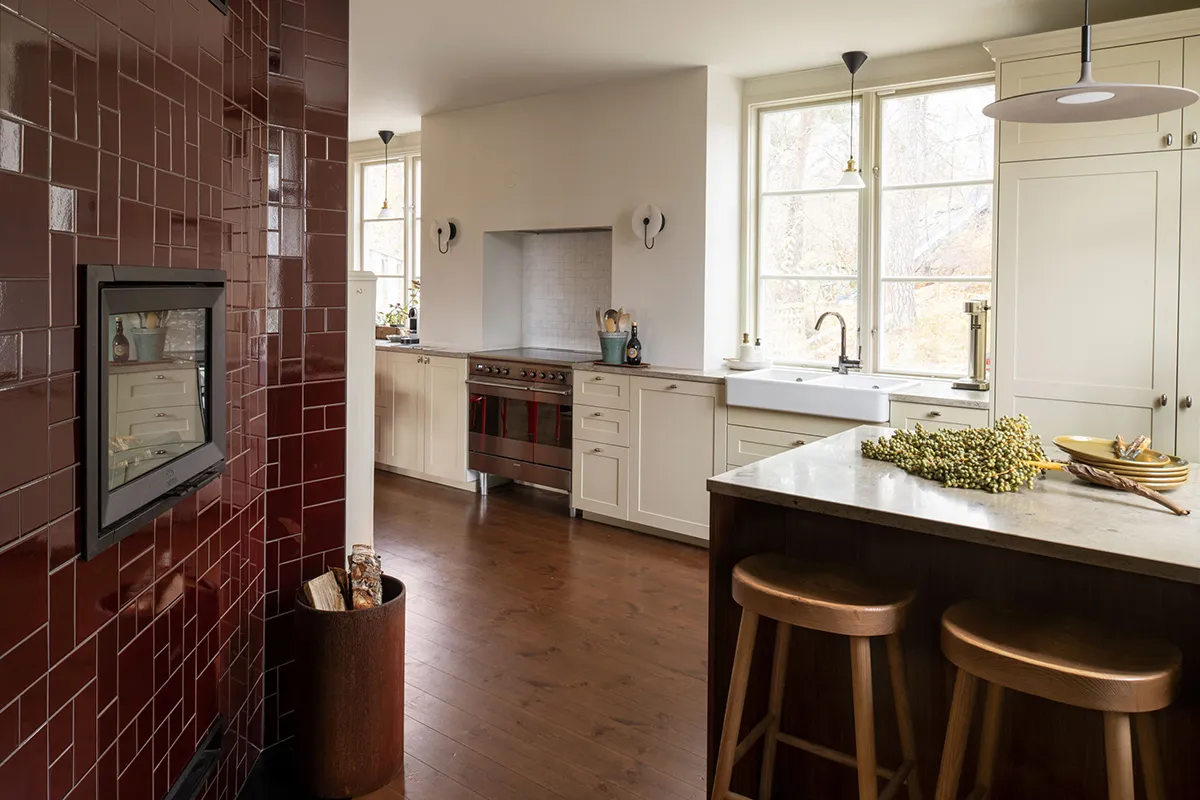 For Carin Wester, the collaboration has taken on a personal touch. In her own kitchen in Bromma, she has designed and had built a tiled stove with the tile Karin, a deep burgundy tile from the collection. The color captures light variations and reflects the house’s history and character.