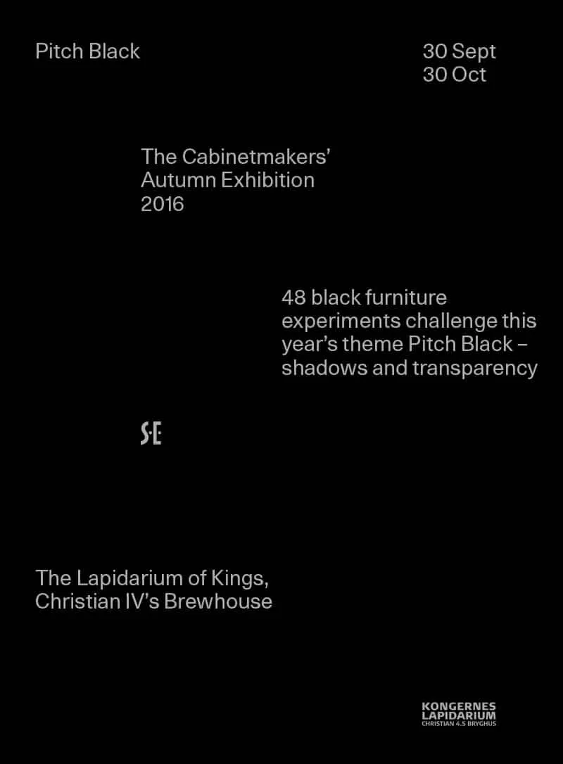 Black like the lines of a paper sketch. Black like the absence of light. In combination with the subtitle, shadows and transparency, the colour black is this year’s theme, which has drawn 48 brand-new furniture experiments into the light. The result of the team effort of designers and manufacturers, our exhibition was conceived in the experimental open space provided by the Cabinetmakers’ Autumn Exhibition in a field that is otherwise driven by commercial interests. We are proud to promote this collaboration and to showcase the outcome at this unique location in the Lapidarium of Kings, King Christian IV’s former brewhouse.